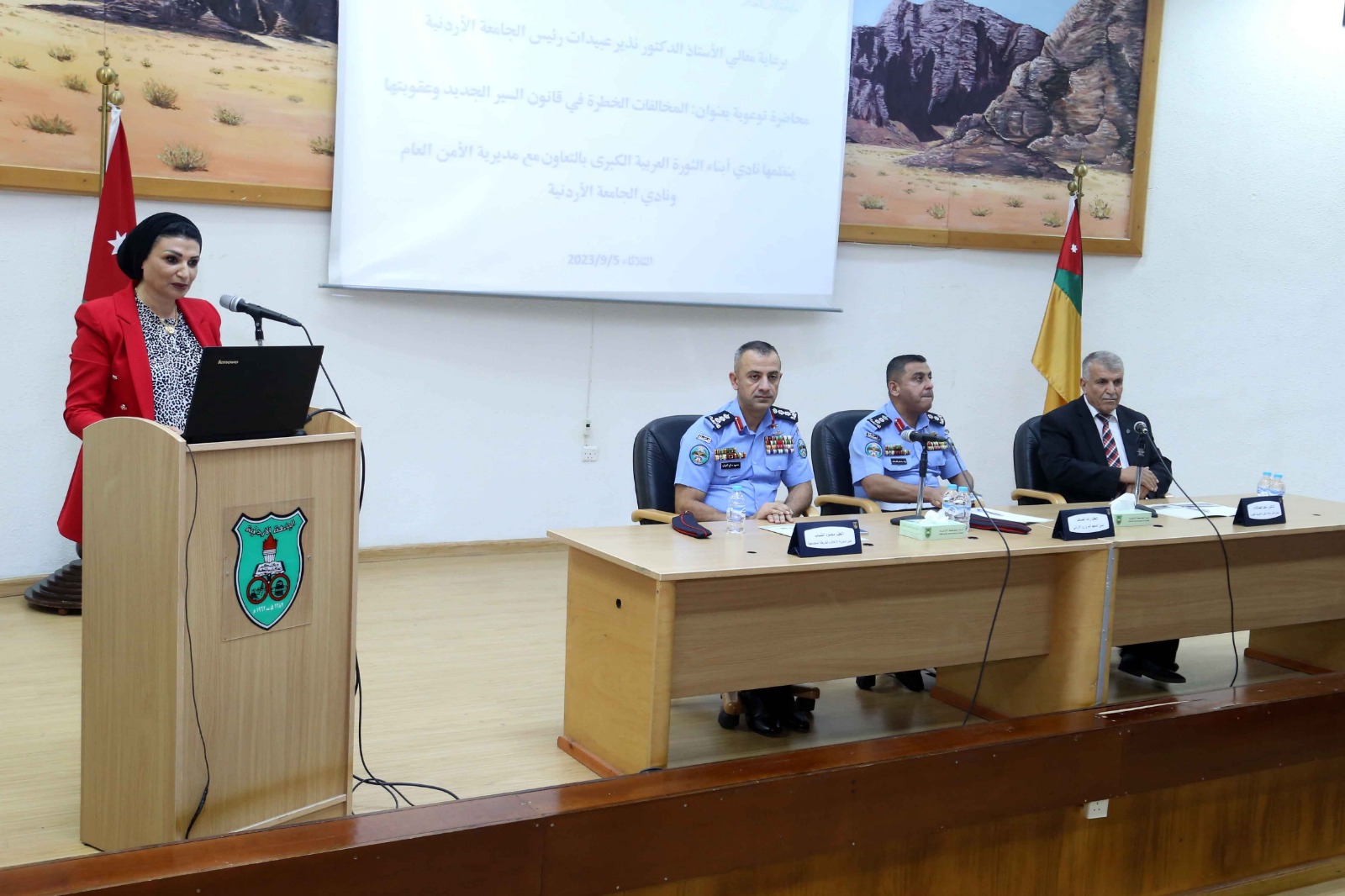جاء ذلك خلال محاضرة توعوية رعاها مندوبا عن رئيس الجامعة نائبه للشؤون الإدارية الدكتور زياد الحوامدة ونظمها نادي أبناء الثورة العربية الكبرى في الجامعة بالتعاون مع نادي الموظفين للتوعية حول قانون السير الجديد الذي بدأ العمل به في الثاني عشر من أيلول الجاري.