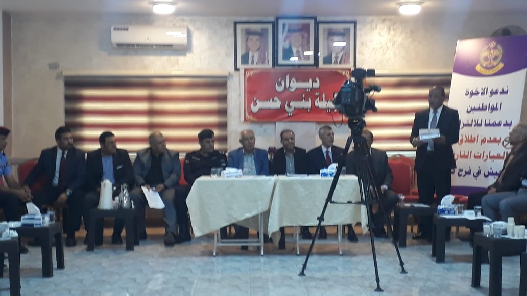 حيث أعلن أبناء قبيلة بني حسن في اجتماع لممثلين عن كافة عشائر القبيلة في محافظة الزرقاء بحضور نائب المحافظ عن التزامهم بمحاربة ظاهرة إطلاق العيارات النارية التي راح ضحيتها الكثير من الأبرياء نتيجة عادات بالية وممارسات طائشة غير مسؤولة يرفضها المجتمع الاردني.