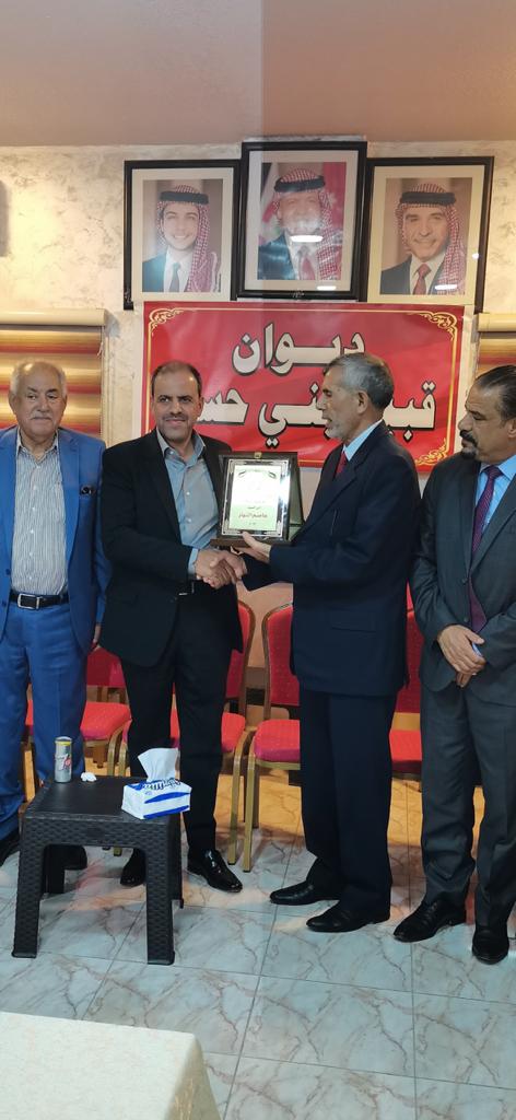 وفي نهاية اللقاء سلمت الهيئة الادارية لنائب المحافظ بيان صادر عن ديوان قبيلة بني حسن يؤيد الوثيقة ويدعوا للتعامل بحزم مع هذه الظاهرة.