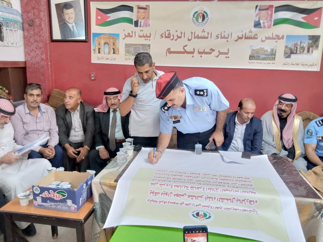 حيث وقع على الاتفاقية المتصرف فواز الزيدان ورئيس مركز أمن المدينة المقدم ماهر الدرايسة وشيوخ ووجهاء ومخاتير وقيادات المجتمع المحلي بالإضافة إلى تجمع سيدات الشمال المجتمعية والأجهزة الأمنية وعضو مجلس المحافظة محمد الخصاونة.