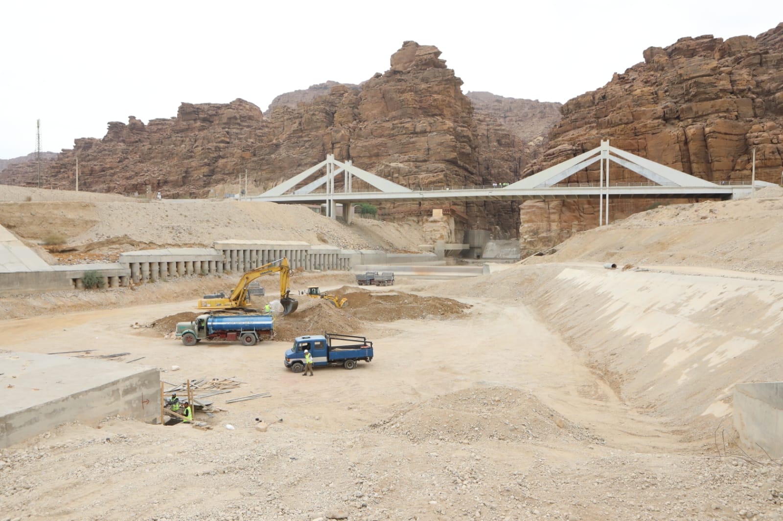 حيث تفقد أبو السمن سير أعمال الصيانة الطارئة لحماية مخرج جسر الموجب والمتمثلة بأعمال فتح مجرى الوادي وتنظيف الأحواض التجميعية عند المدخل ومعالجة النحر الحاصل اسفل بلاطة المخرج للعبارات القائمة من خلال استخدام ردم صخري وخرسانة للتغليف وانشاء بلاطة علوية لحماية المنشآت القائمة.