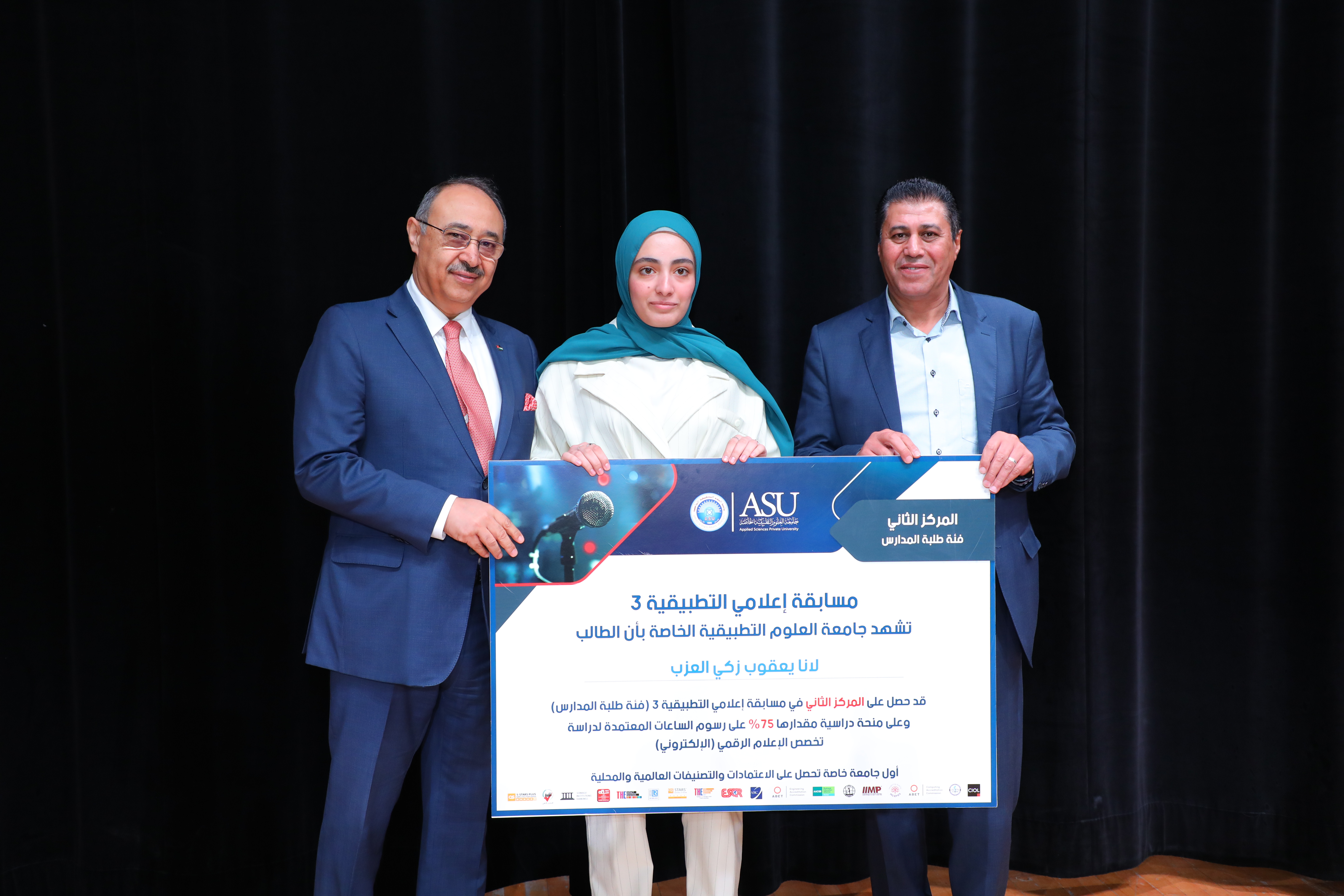 تبارك جامعة العلوم التطبيقية الخاصة بكافة كوادرها الأكاديمية والإدارية لجميع الفائزين وتتمنى لهم وللمشاركين مستقبلاً إعلامياً باهراً.