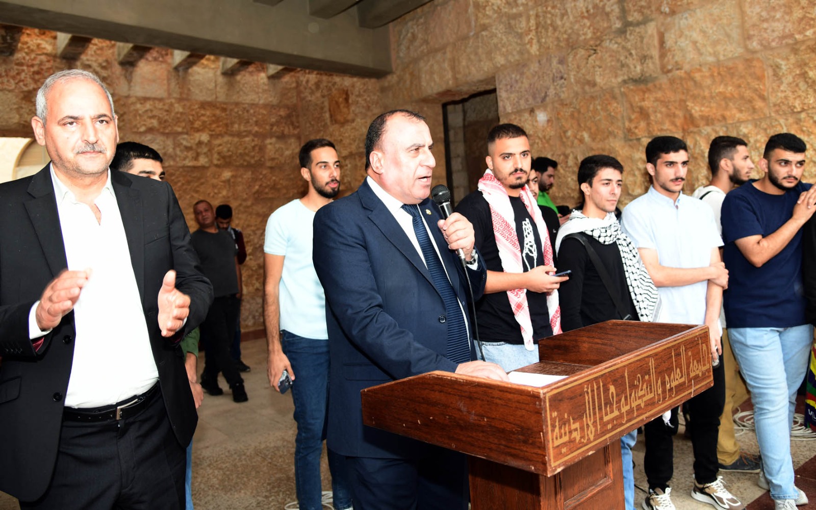 وعبَّر الطلبة عن استنكارهم ورفضهم للعدوان الصهيوني على الأراضي الفلسطينية، مشيدين بصمود الشعب العربي الفلسطيني المستمر في نضاله وكفاحه وجهاده دفاعًا عن أرض فلسطين، ومؤكدين التفافهم ودعمهم المطلق لجميع الجهود التي تبذلها القيادة الهاشمية الحكيمة دفاعًا عن القضية الفلسطينية وحق الشعب الفلسطيني في الحرية والحياة.