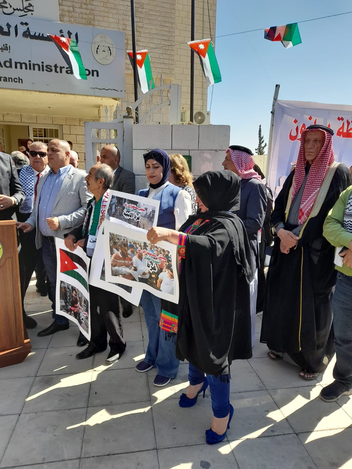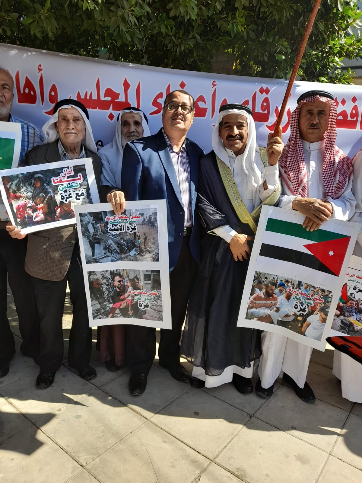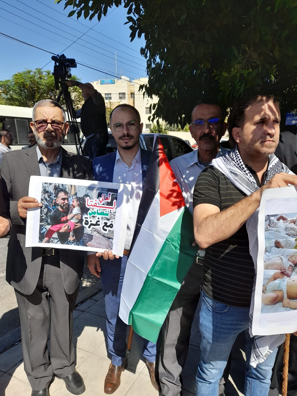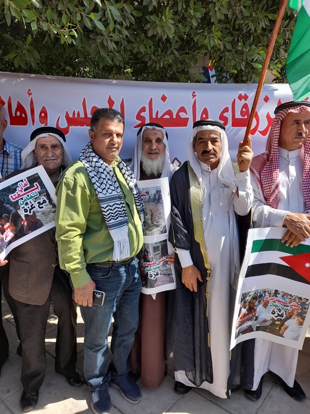 وأكد المشاركون في الوقفة التضامنية الرفض التام للعدوان الإسرائيلي على المدنيين، والدعم المطلق لمواقف جلالة الملك عبدالله الثاني - الوصي على المقدسات الإسلامية والمسيحية في القدس الشريف - ودعم مواقف الأردن التاريخية حيال فلسطين، مطالبين بوقف العدوان الإسرائيلي على قطاع غزة والمدن والبلدات الفلسطينية، ومشددين على أن المنطقة لا يمكن أن تنعم بالسلام دون تمكين الشعب الفلسطيني من إقامة دولته على أرضه وفق حل دائم وشامل.