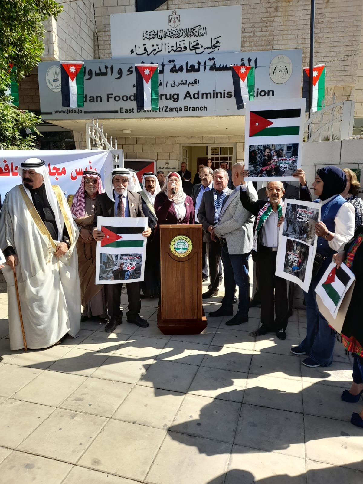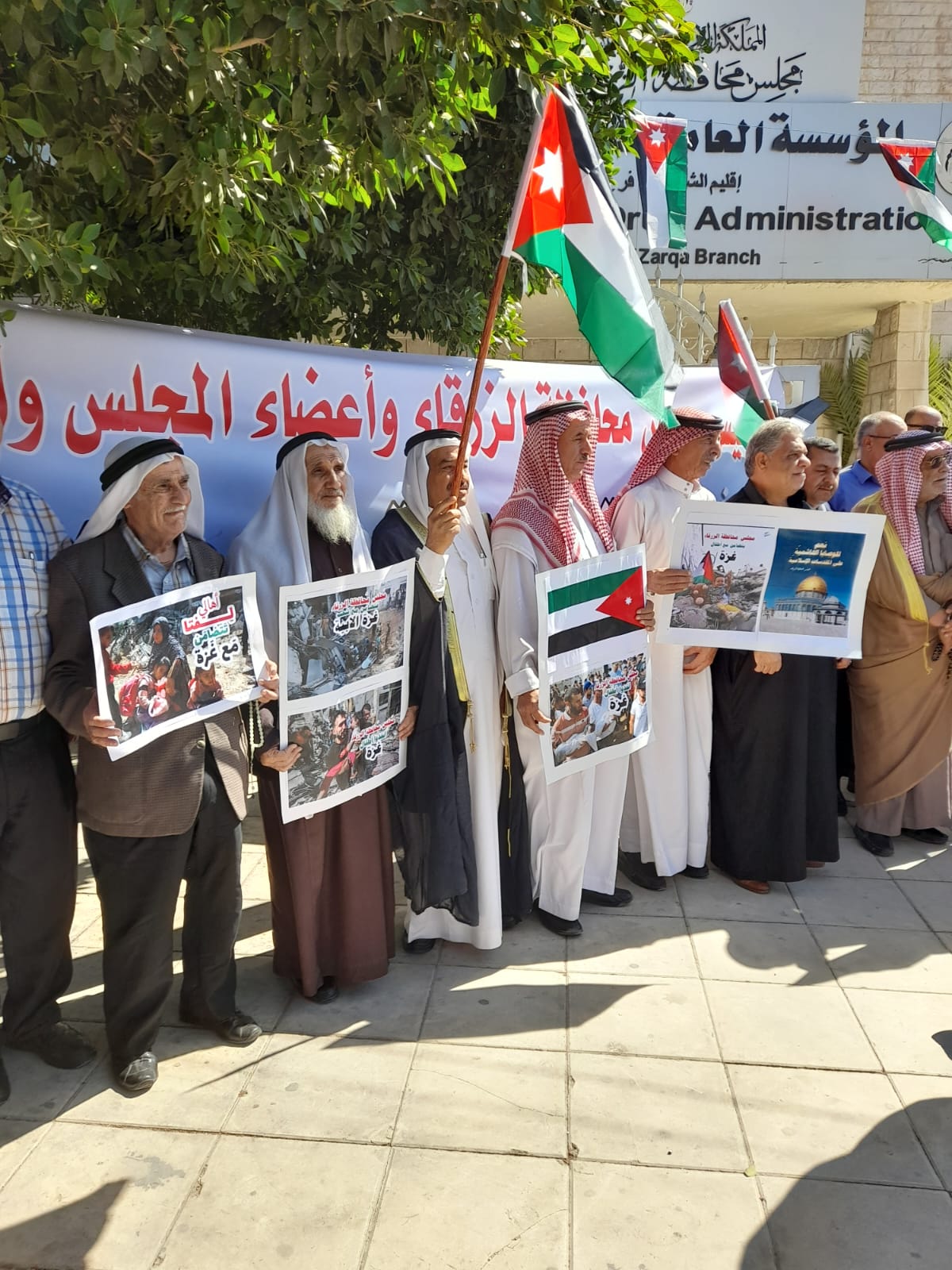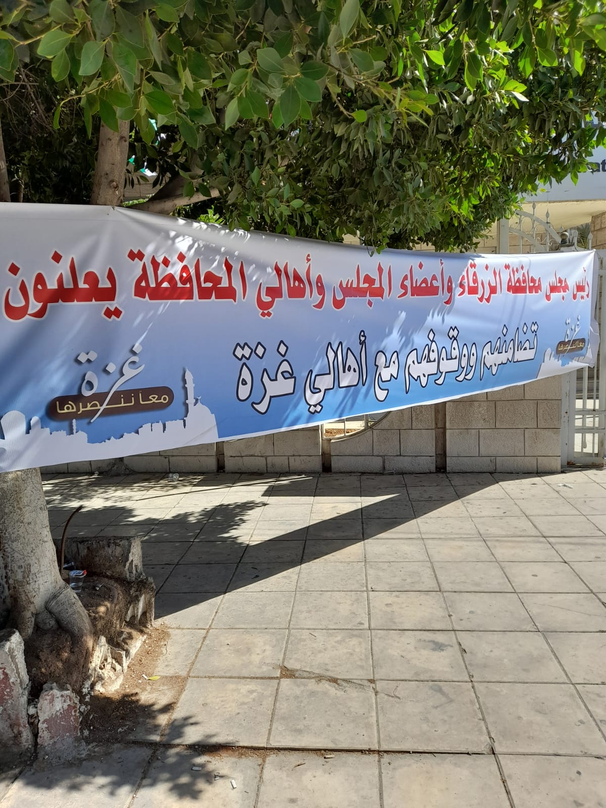 وأعرب رئيس مجلس محافظة الزرقاء، الدكتور ماجد الخضري عن التضامن الكامل لأهالي محافظة الزرقاء مع الشعب الفلسطيني الشقيق في وجه العدوان الإسرائيلي الغاشم الذي يتعرض له، مشيراً إلى أن الشعب الفلسطيني هو شعب مكافح وصامد، ولن يتخلى عن حقه المشروع في إقامة دولته المستقلة على أرضه من البحر إلى النهر.