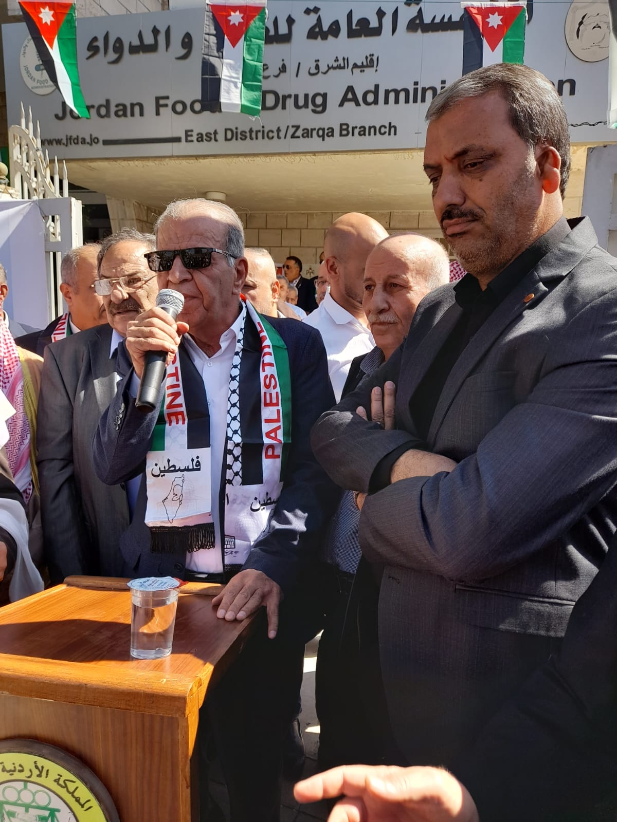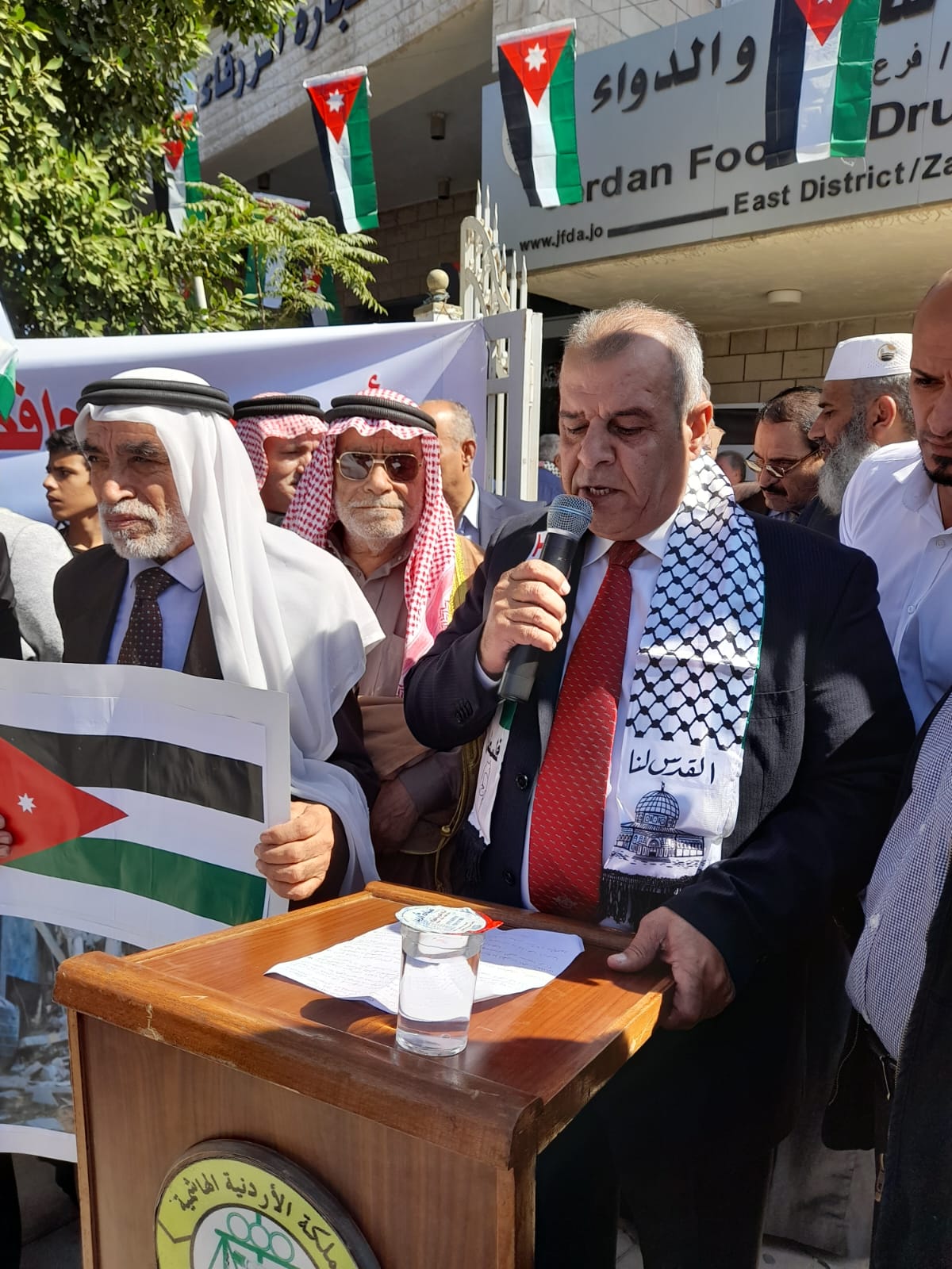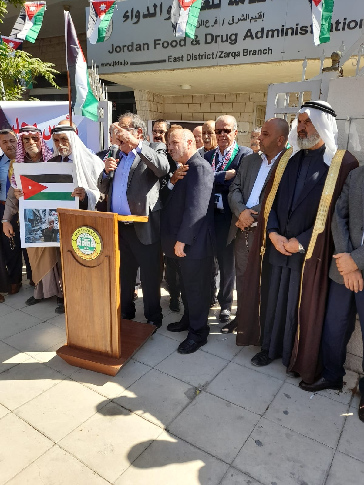 وأعرب رئيس مجلس محافظة الزرقاء، الدكتور ماجد الخضري عن التضامن الكامل لأهالي محافظة الزرقاء مع الشعب الفلسطيني الشقيق في وجه العدوان الإسرائيلي الغاشم الذي يتعرض له، مشيراً إلى أن الشعب الفلسطيني هو شعب مكافح وصامد، ولن يتخلى عن حقه المشروع في إقامة دولته المستقلة على أرضه من البحر إلى النهر.