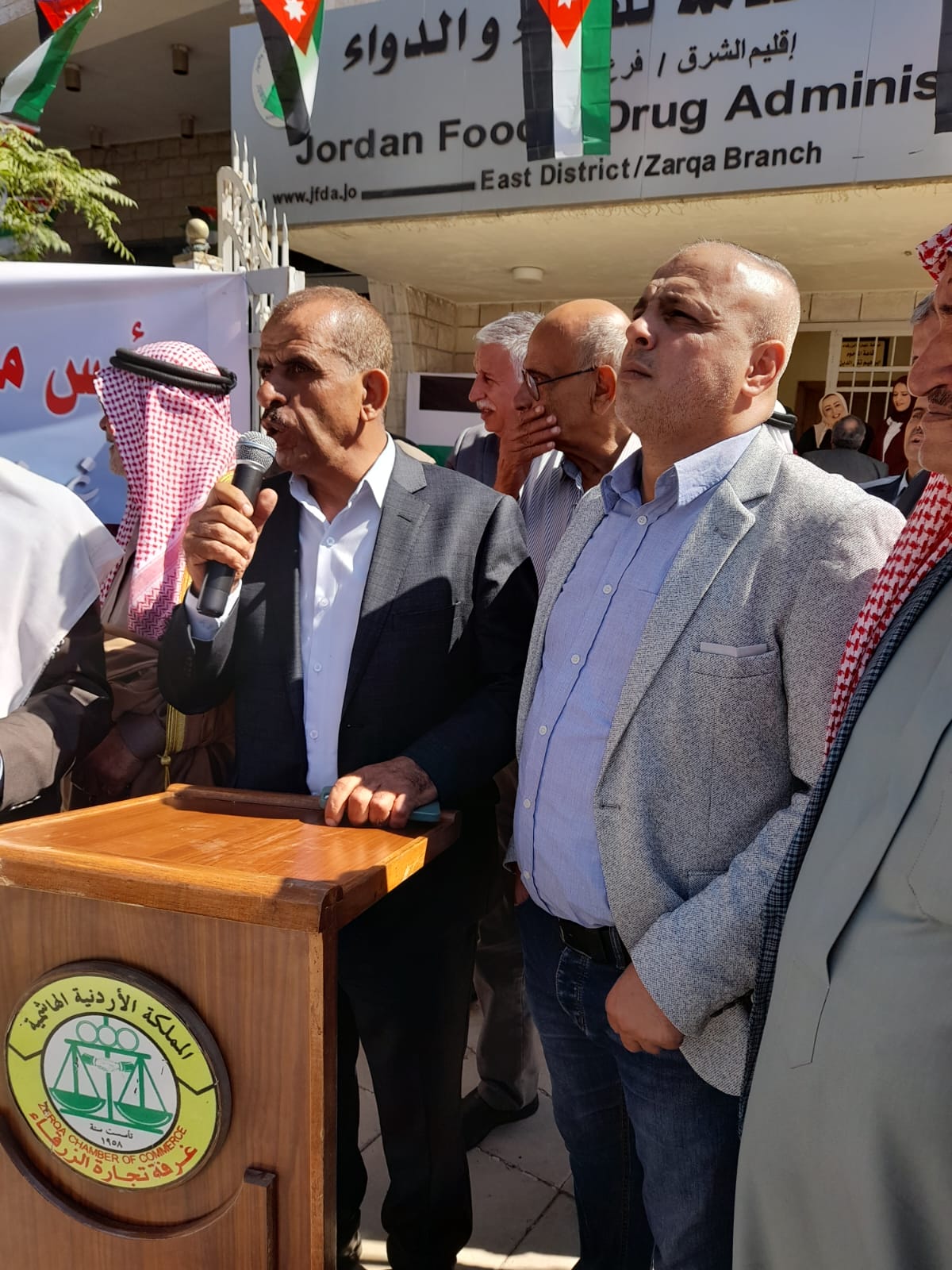 بدوره قال رئيس غرفة تجارة الزرقاء السيد حسين شريم، إن الغرفة مستعدة لتقديم كل ما يمكن من دعم ومساعدة لأهل قطاع غزة، مؤكداً أن هذه الوقفة واجب تجاه أهل القطاع الصامدين في وجه العدوان. كما وجه التحية لكل الشرفاء الذين يدافعون عن المسجد الأقصى وعن الأمة وقضاياها.