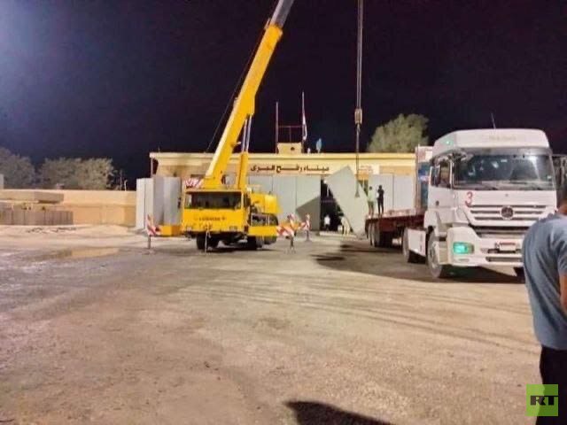 عاجل - بدء إزالة الحواجز الأسمنتية وفتح بوابة معبر رفح من الجانب المصري (صورة)