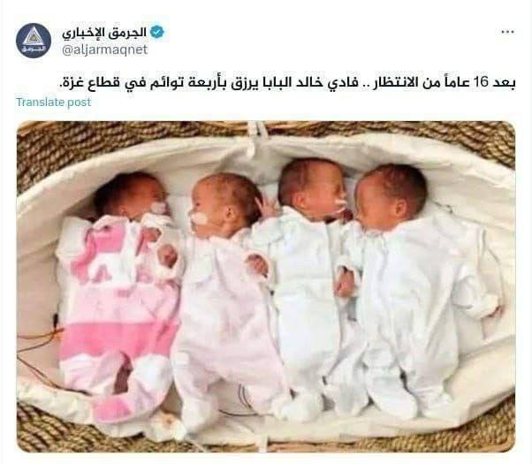 والسيدة السويركي أنجبت التوأمين ثلاثة ذكور وبنت، بعد عملية تخصيب صناعية.