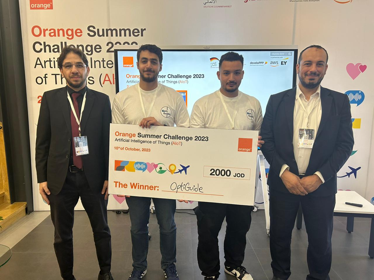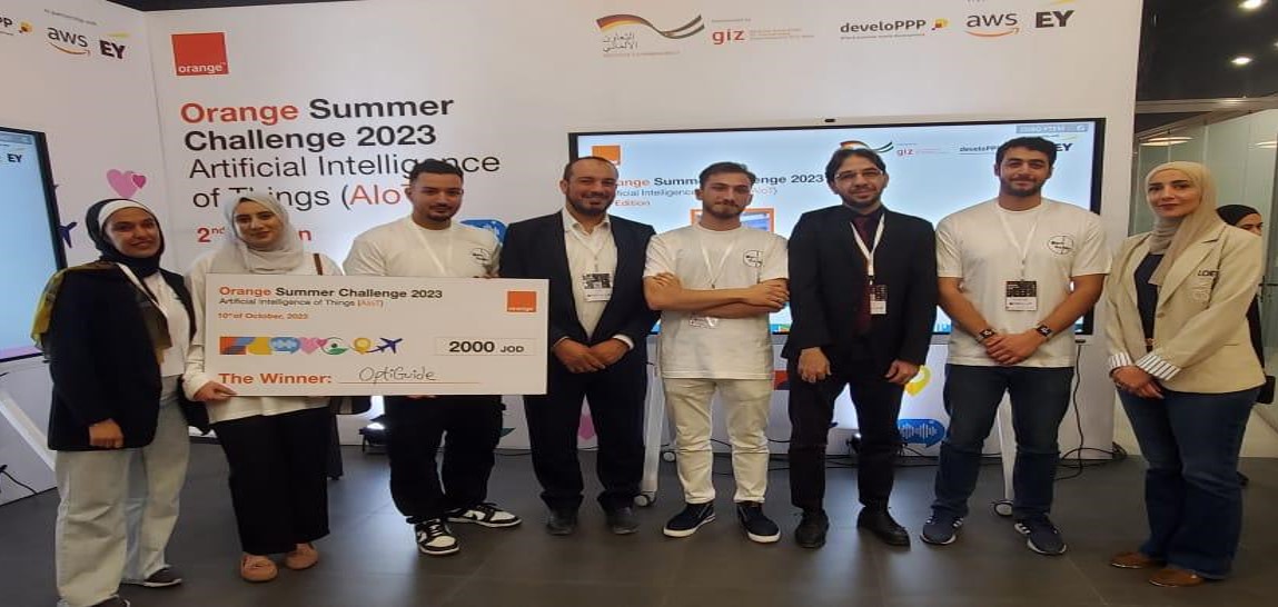 ضمن تحدي أورانج الصيفي الثاني لعام 2023، الذي جاء بعنوان "الذكاء الاصطناعي وإنترنت الأشياء"، فاز فريق OptiGuide، المكون من ستة طلاب، ثلاثة منهم من الجامعة الأردنية، بواقع طالبين من كلية الهندسة وطالب من كلية الملك عبد الله الثاني لتكنولوجيا المعلومات، بالاشتراك مع ثلاثة زملاء لهم من جامعات أردنية مختلفة.