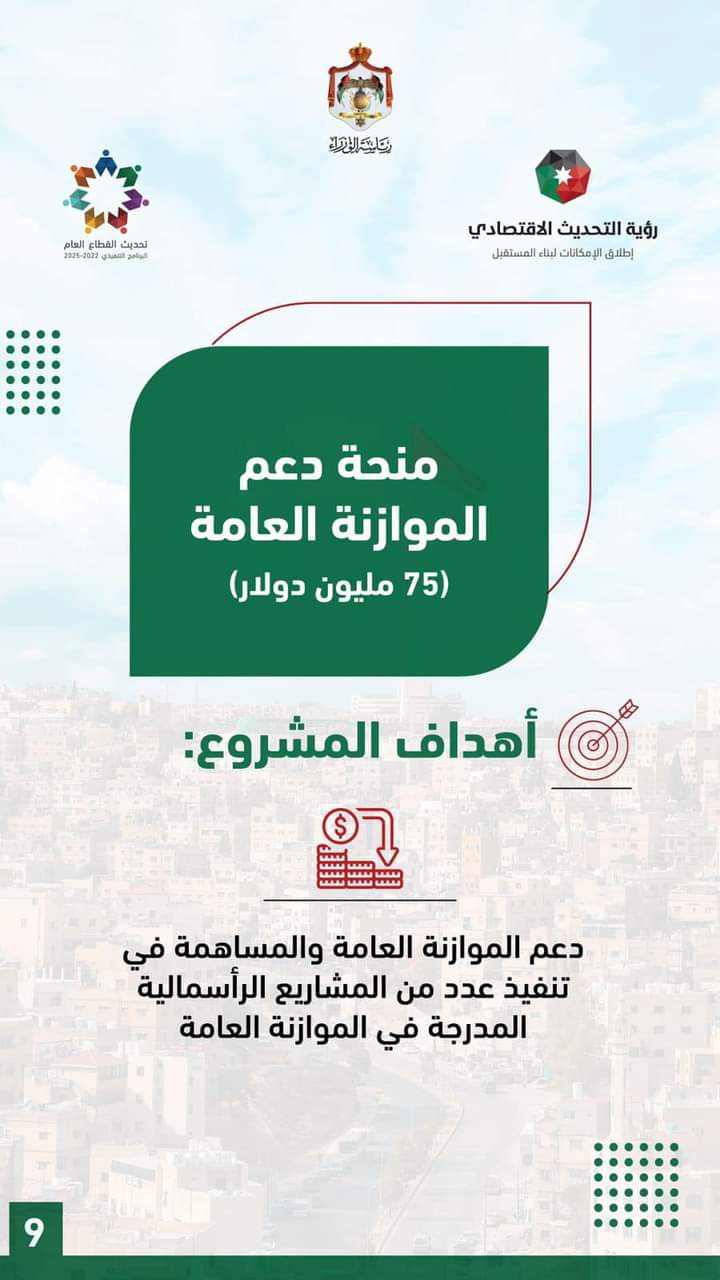 وتغطي هذه المشاريع قطاعات الطاقة، والسياحة، والتعليم، والتحول الرقمي في قطاع الصحة ودعم الموازنة العامة وغيرها.