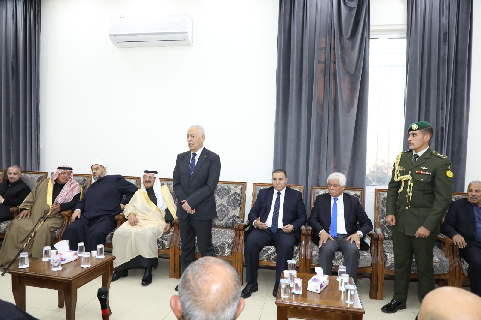 قدم مندوبا عن جلالة الملك عبدالله الثاني ابن الحسين المعظم وسمو ولي العهد المعظم رئيس الديوان الملكي الهاشمي السيد يوسف حسن العيسوي واجب العزاء اليوم السبت الموافق 18-11-2023