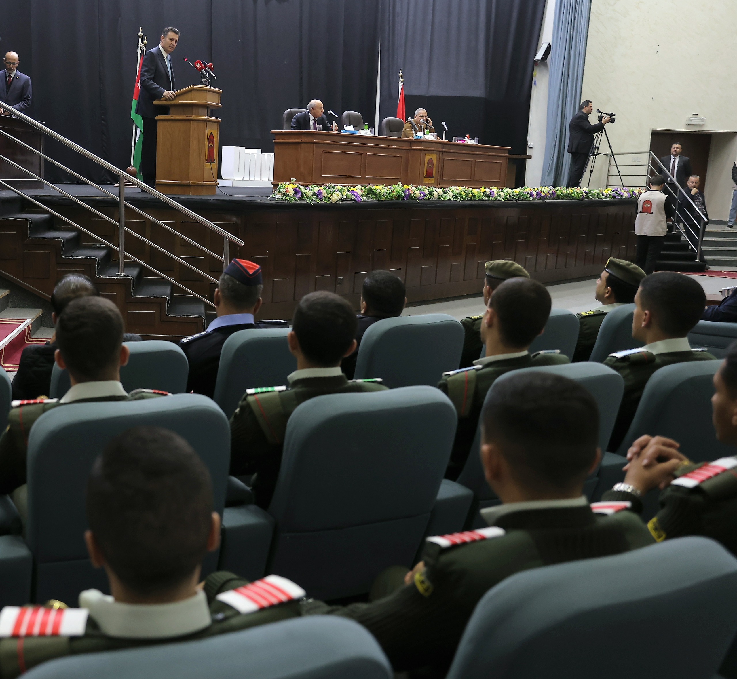 وأشار إلى أن الوعي الوطني هو السياج المنيع الذي يشتمل على منظومة متكاملة من المحاور الوطنية: الانتماء ، التربية الوطنية، التوعية الوطنية، والمواطنة الصالحة، والتي تشكل الأساس المتين في وحدة الأردن واستقراره والحفاظ على مقدراته ومنجزاته، وصونها والدفاع عنها ، وهذا ما دفعنا إلى التفاعل مع المتغيرات والأحداث الداخلية والخارجية، وعلى رأسها القضية الفلسطينية التي كانت وما زالت محط اهتمام الهاشميين ، وفي هذا المجال نقف صفا واحدا خلف القيادة الهاشمية عندما وضع العالم أمام مسؤولياته تجاه المشهد الحزين والمؤلم في غزة؛ جرائم إنسانية اكتملت أركانها وترقى إلى الكارثة وأحداث دموية مروعة لا يمكن أن تتوقف إلا بتضافر الجهود لتطبيق القانون وتنفيذ قرارات الشرعية الدولية تحقيقا للأمن والسلم الدوليين.