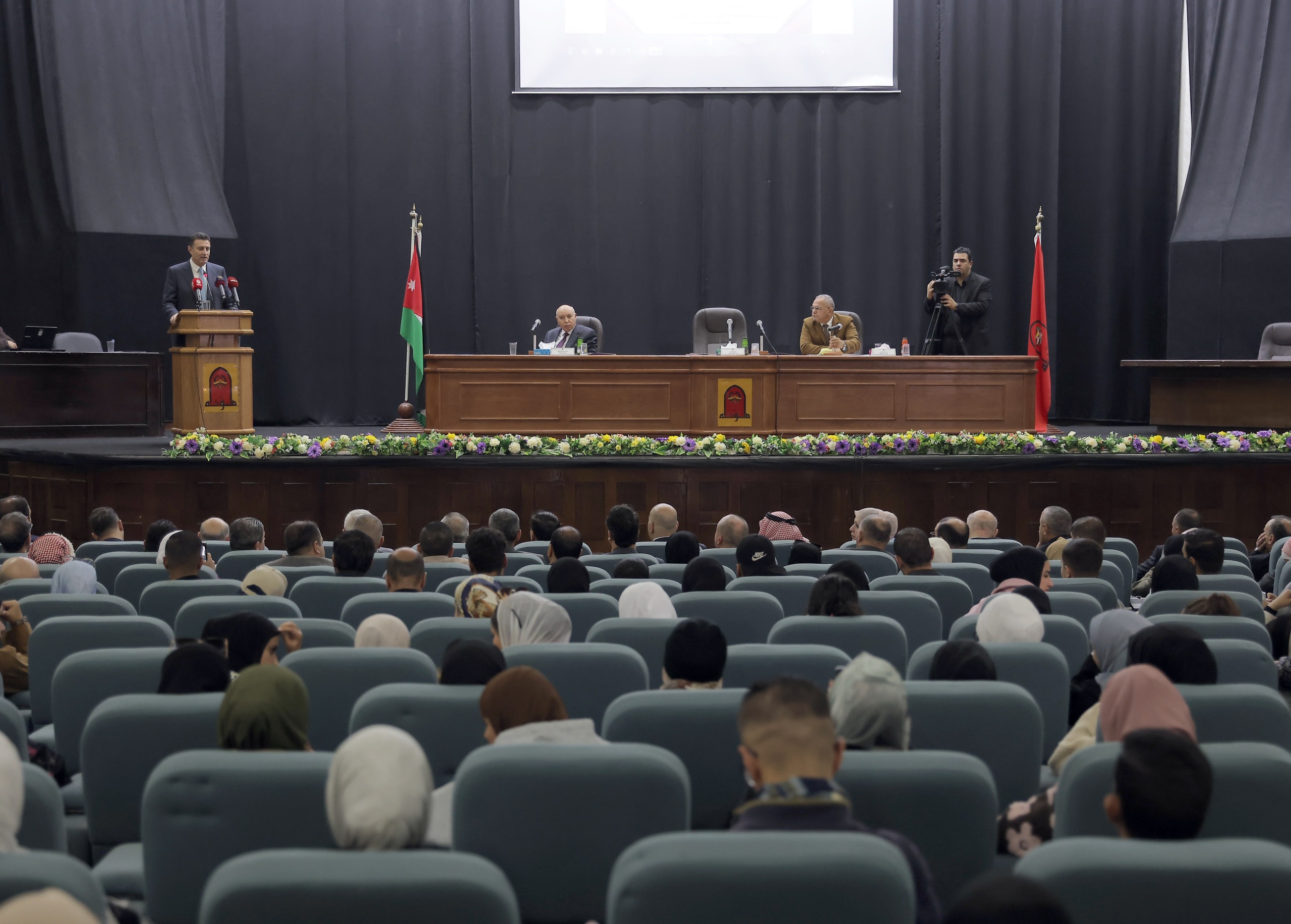 وبدأت الجلسة بقراءة الفاتحة على أرواح شهداء غزة بحضور مساعد رئيس المجلس فايزة عضيبات والنواب : أحمد القطاونة والدكتور غازي الذنيبات وسالم الضمور وعودة النوايشة والدكتور طالب الصرايرة وأيمن المجالي وأيمن مدانات والدكتور علي الطراونة ونواب رئيس الجامعة للشؤون الإدارية الدكتور محمد الصرايرة ولشؤون خدمة المجتمع المحلي الدكتور قبلان الخرشة والشؤون الأكاديمية الدكتور محمد المجالي وعدد من عمداء الكليات وأعضاء الهيئة التدريسية وحشد كبير من طلبة الجامعة.