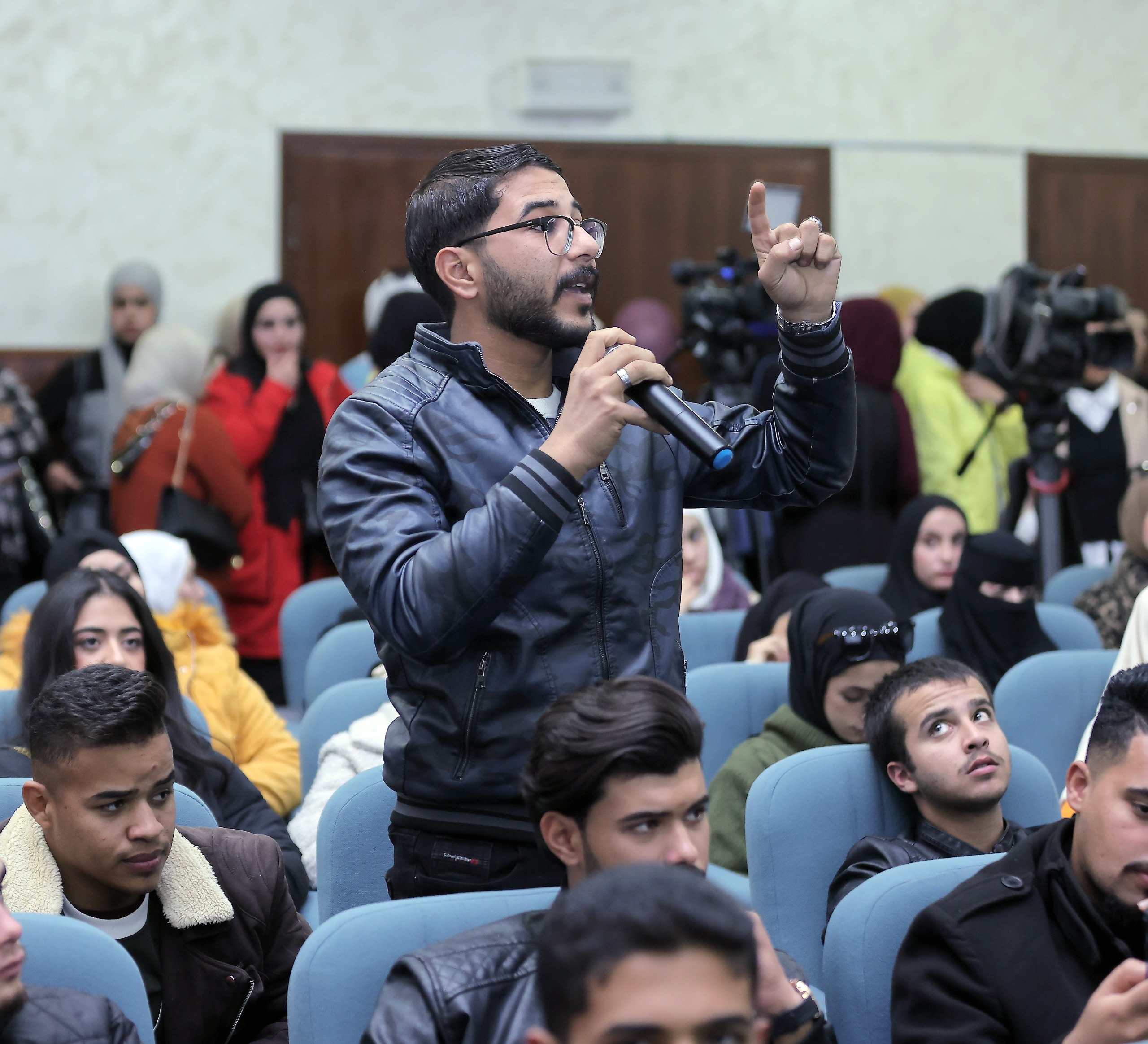 وقال عميد شؤون الطلبة في الجامعة الدكتور رائد العضايلة إن تنظيم هذا اللقاء مع رئيس مجلس النواب جاء من اجل توفير مساحة وطنية مناسبة لطلبة الجامعة للاطلاع على كل ما قامت به الدولة الأردنية من أجل مساندة الأشقاء في فلسطين وغزة على وجه الخصوص مشيرا إلى أن جامعة مؤتة والطلبة فيها يقفون خلف القيادة الهاشمية الحكيمة ومواقفها الوطنية والقومية المشرفة تجاه ما يجري من عدوان على الشعب الفلسطيني.