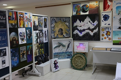 واشتمل المعرض على عرض باكورة أعمال الطلبة ومنتجاتهم من قسم تكنولوجيا الوسائط المتعددة وقسم التصميم الجرافيكي وقسم هندسة العمارة وقسم تصميم الأزياء.