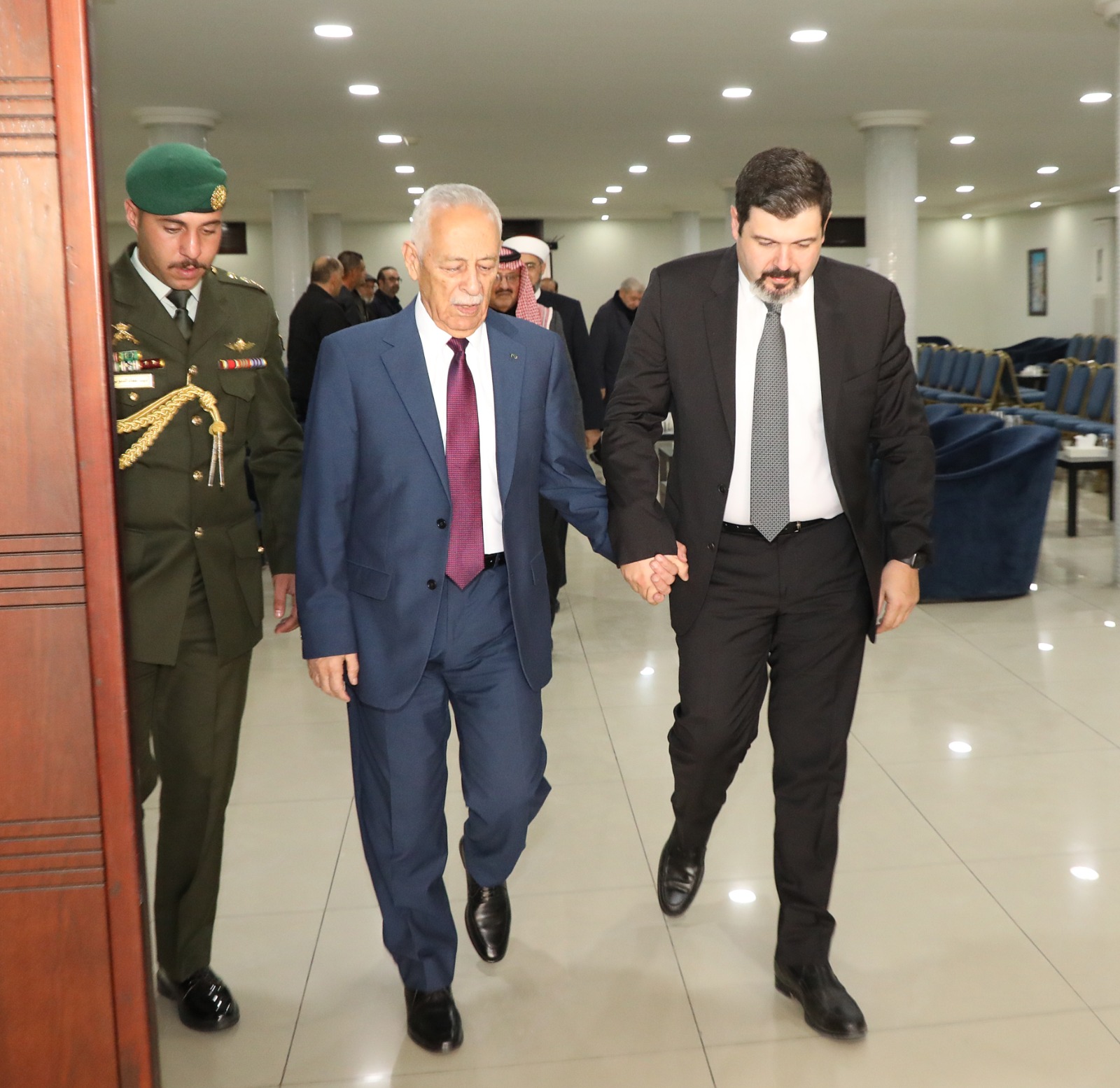 قدم مندوبا عن جلالة الملك عبدالله الثاني ابن الحسين المعظم وسمو ولي العهد المعظم رئيس الديوان الملكي الهاشمي يوسف حسن العيسوي واجب العزاء اليوم الاحد الموافق 3-12-2023 بالمرحوم هشام احمد الطراونة ( أبو احمد) شقيق دولة الدكتور المرحوم فايز الطراونة.