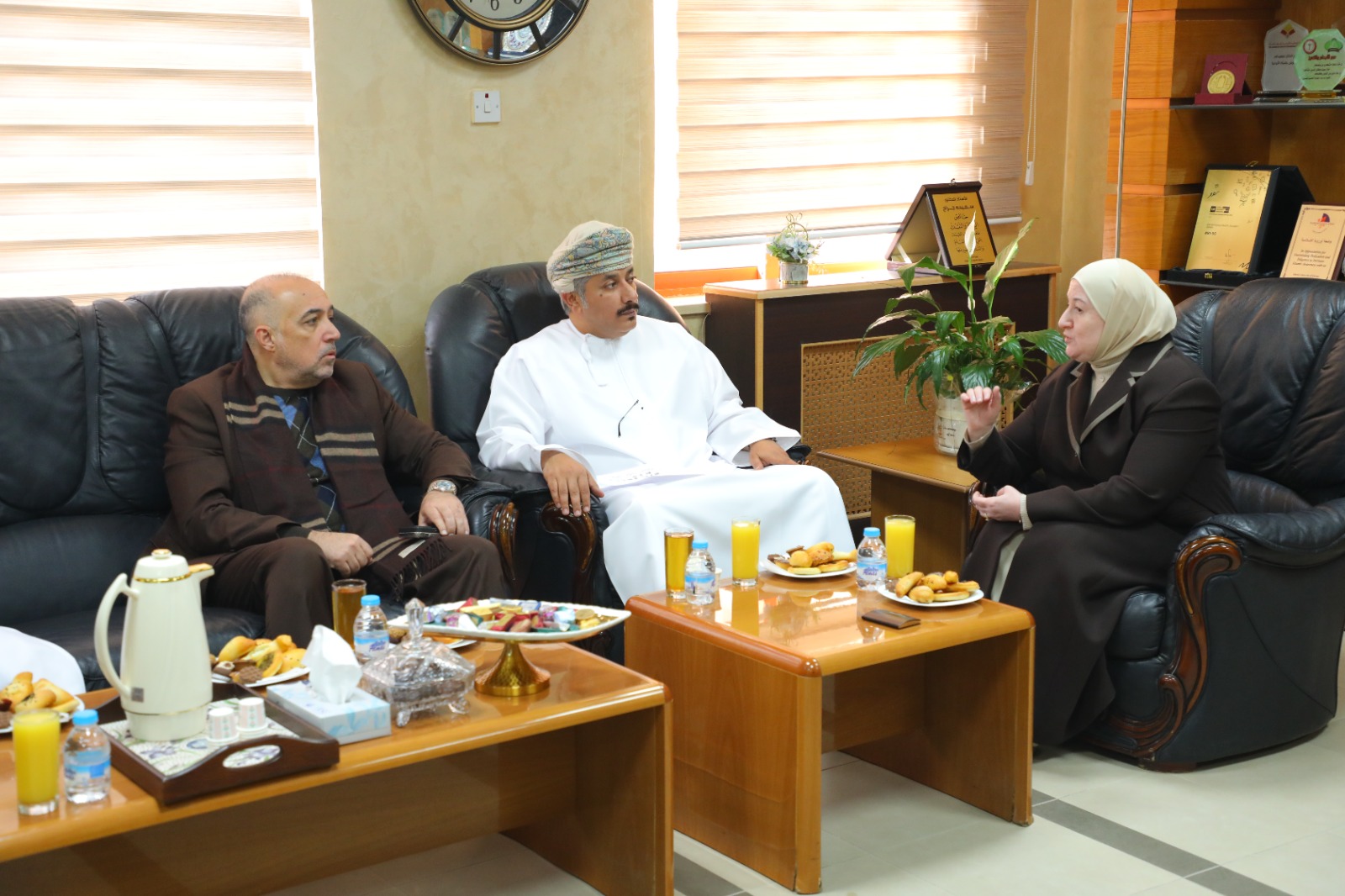 من جهتها، عرضت الدكتورة الجراح، لمسيرة الجامعة ونشأتها وكلياتها وتخصصاتها وما حظيت به من مراكز مرموقة على مستوى المنطقة، وما تطرحه من تخصصات لمختلف الدرجات العلمية، واستحداثها كلية طب الأسنان التي تعتبر صرحا طبيا تعليميا متميزا على المستوى الإقليمي، وما تقدمه الجامعة من خدمات طلابية متميزة للأشقاء العرب بشكل عام وللطلبة العمانيين بشكل خاص.
