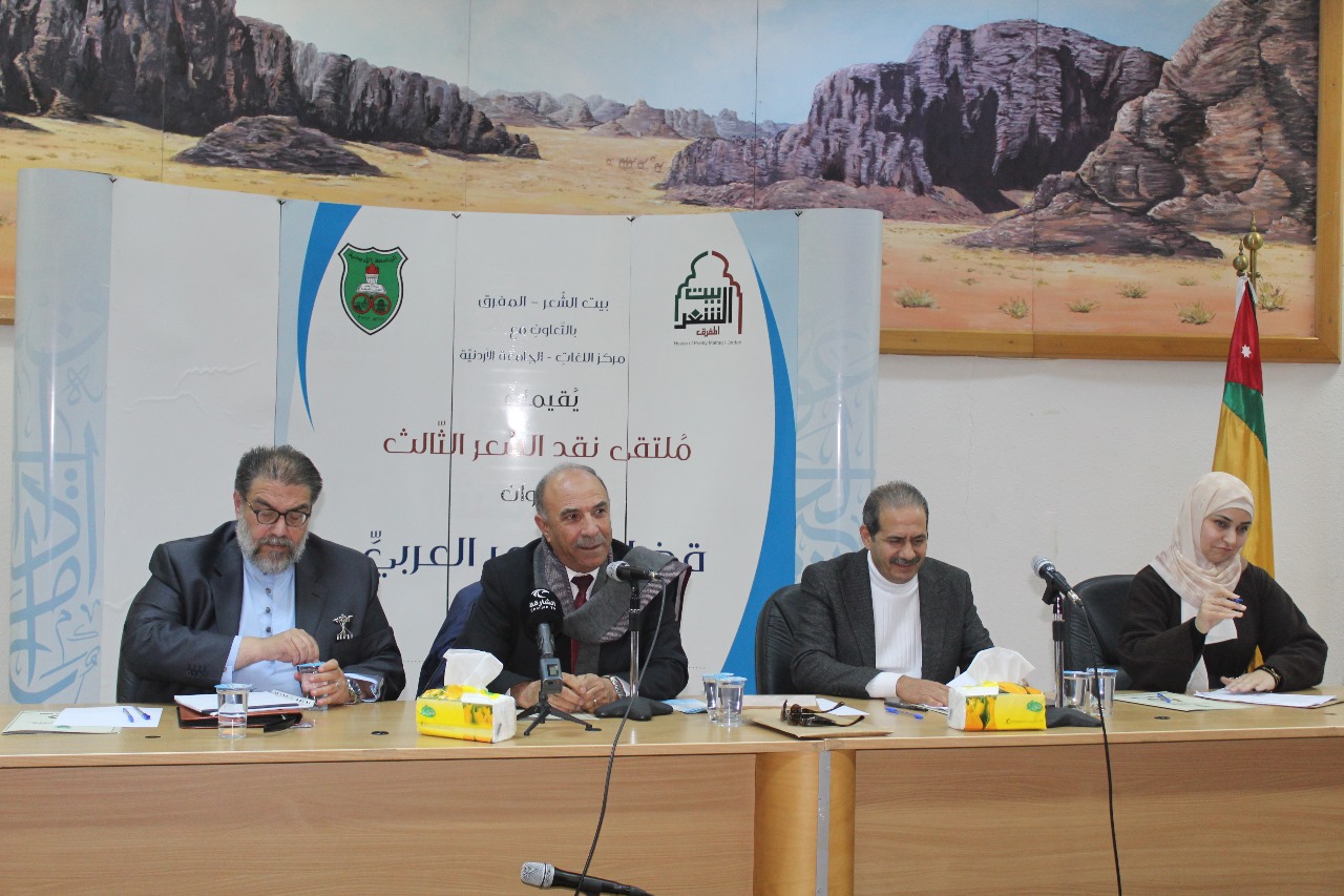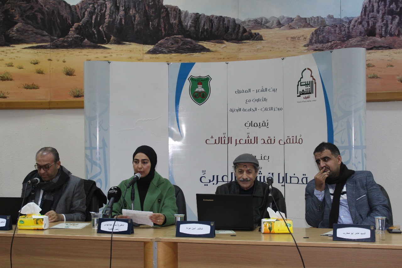 بيت الشعر المفرق وبالتعاون مع الجامعة الأردنية بدا أعمال ملتقى نقد الشعر لدورته الثالثة صبيحة يوم الاربعاء ٢٠٢٣/١٢/١٣ والذي يقام في مركز اللغات في الجامعة الأردنية تحت عنوان "قضايا الشعر العربي الحديث"