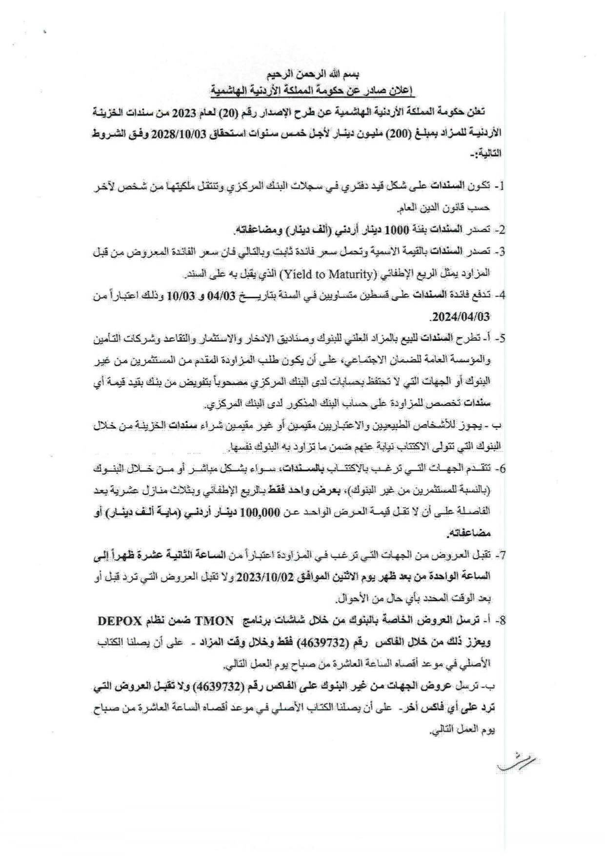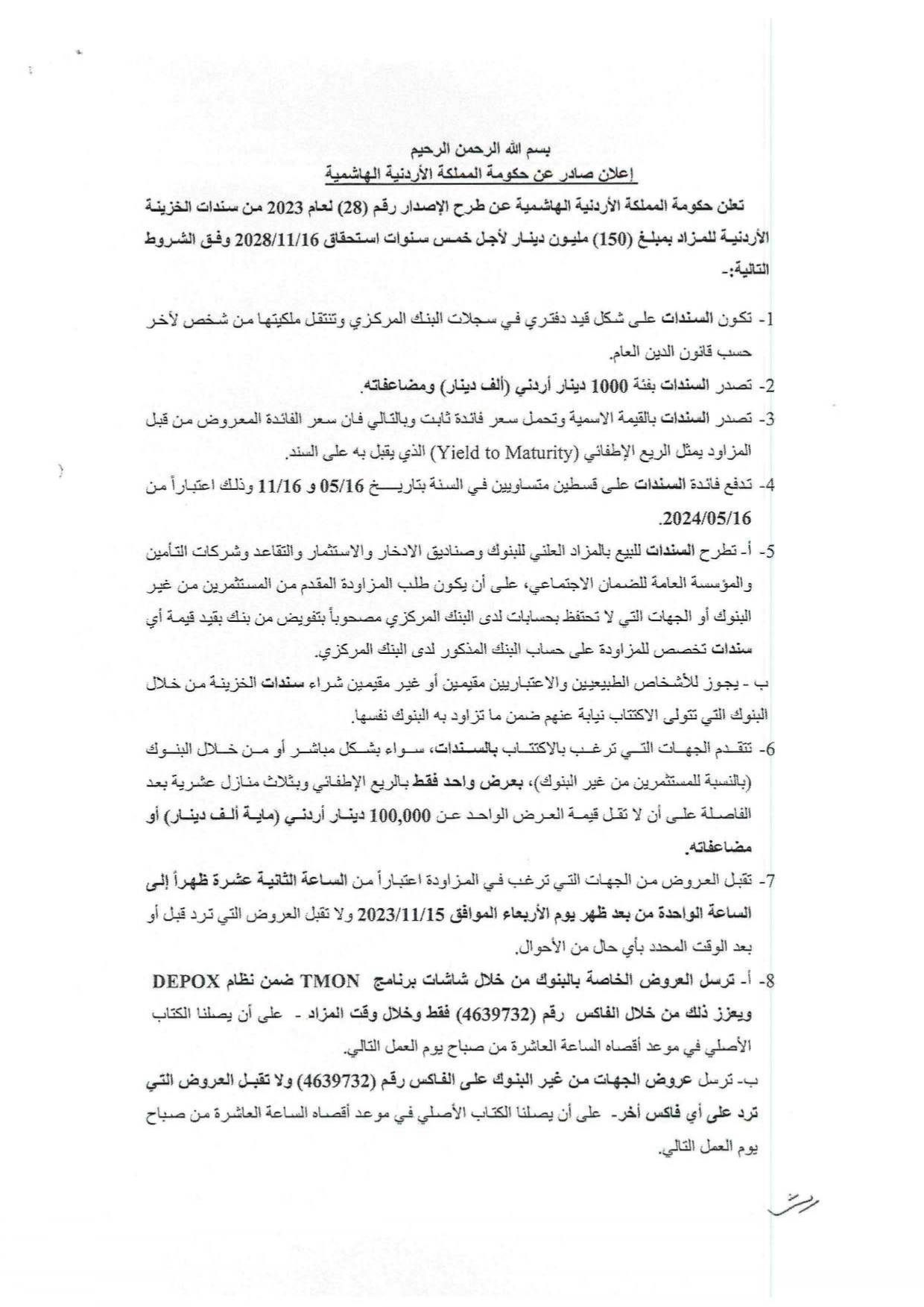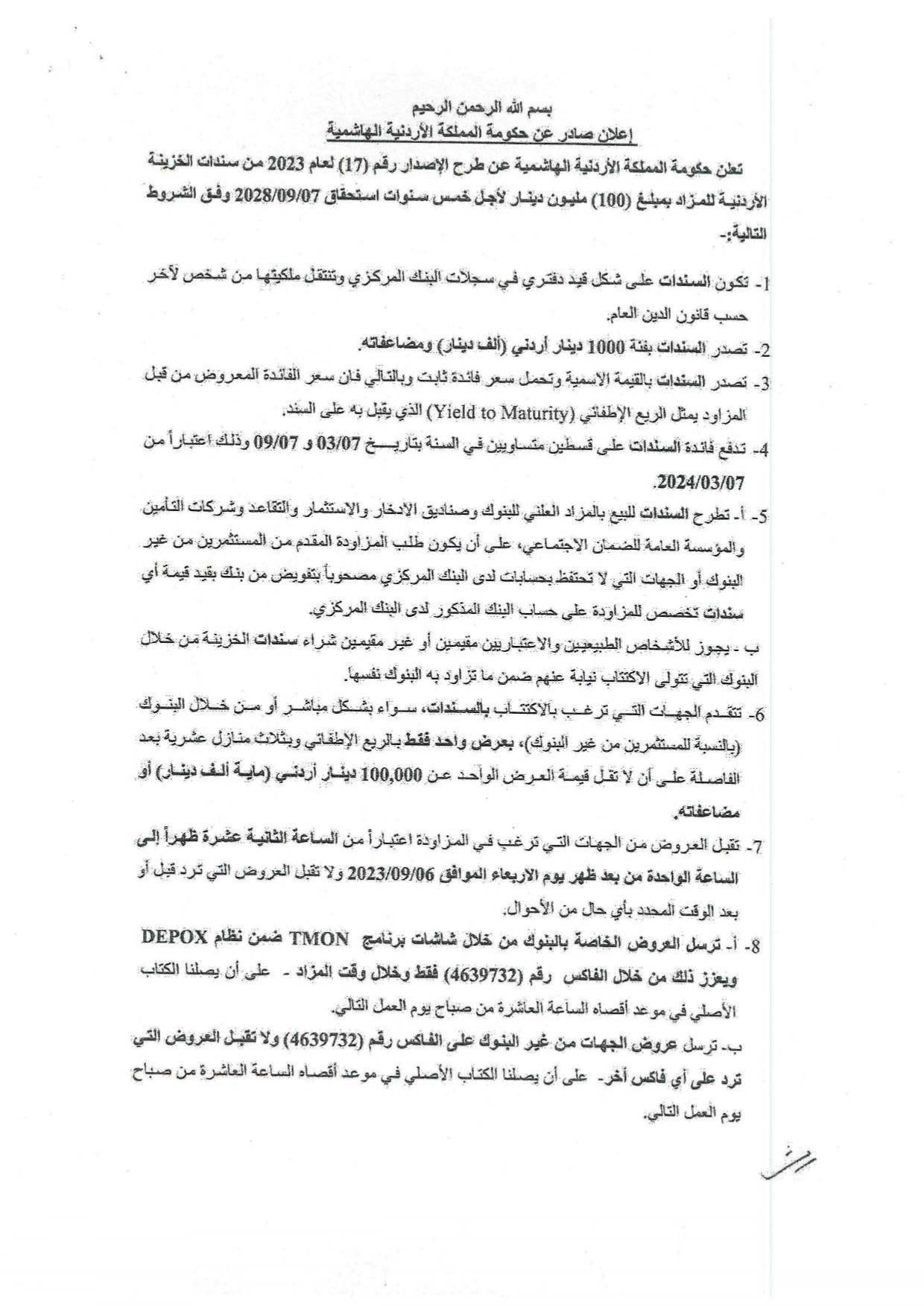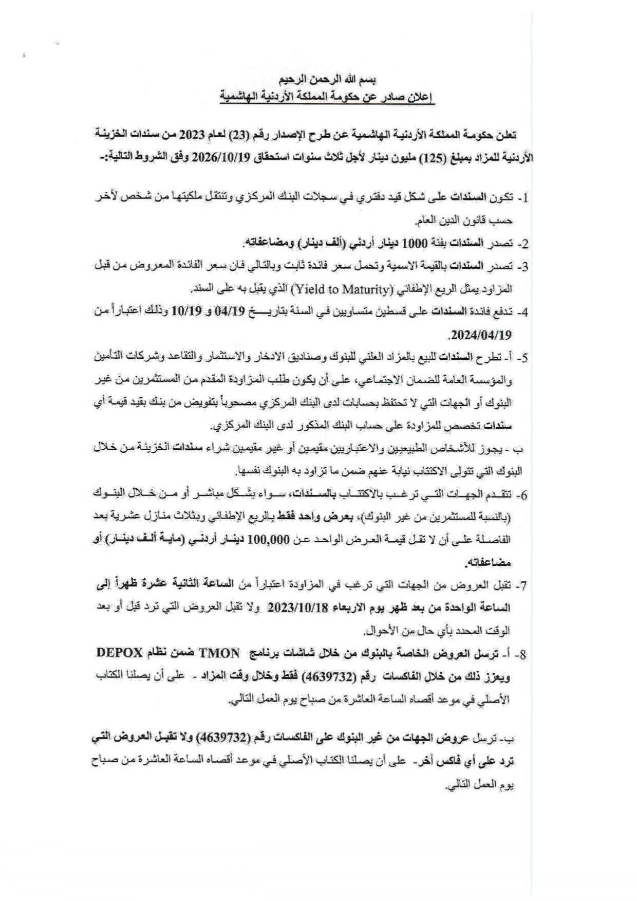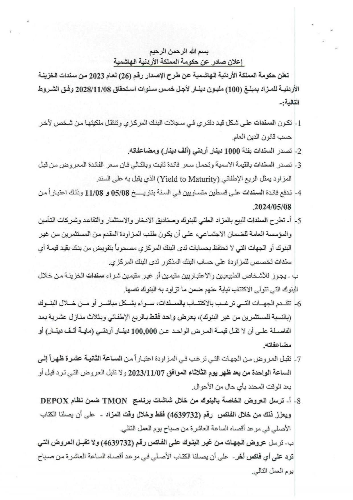 أعلنت بورصة عمّان، إدراج عدد من إصدارات سندات الخزينة عن العام الماضي 2023، وذلك اعتباراً من صباح غد الاثنين.