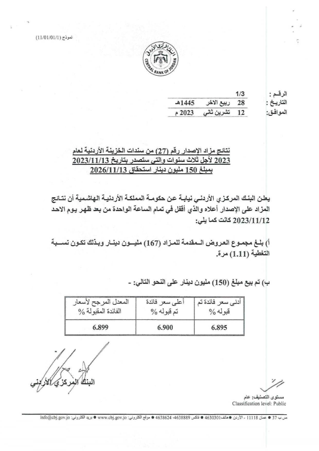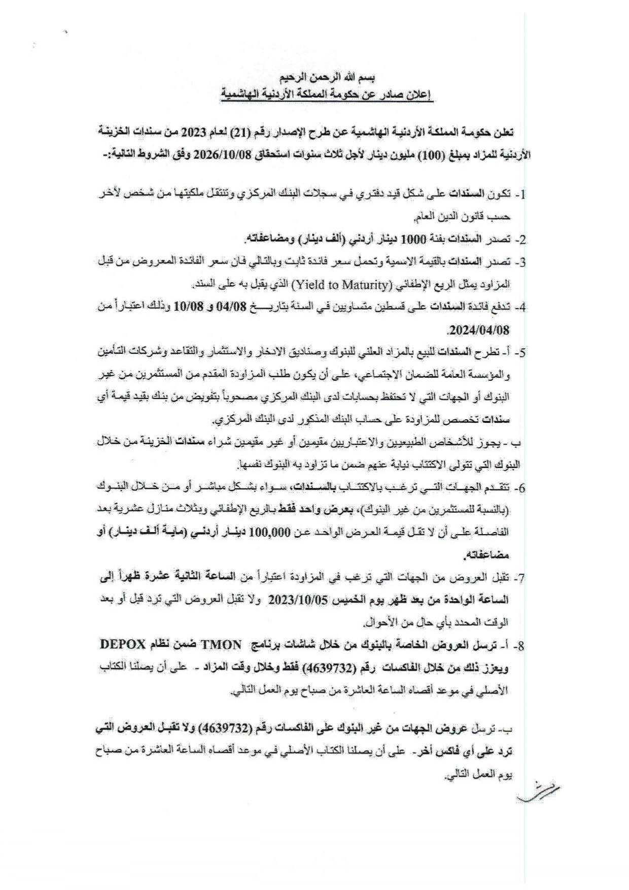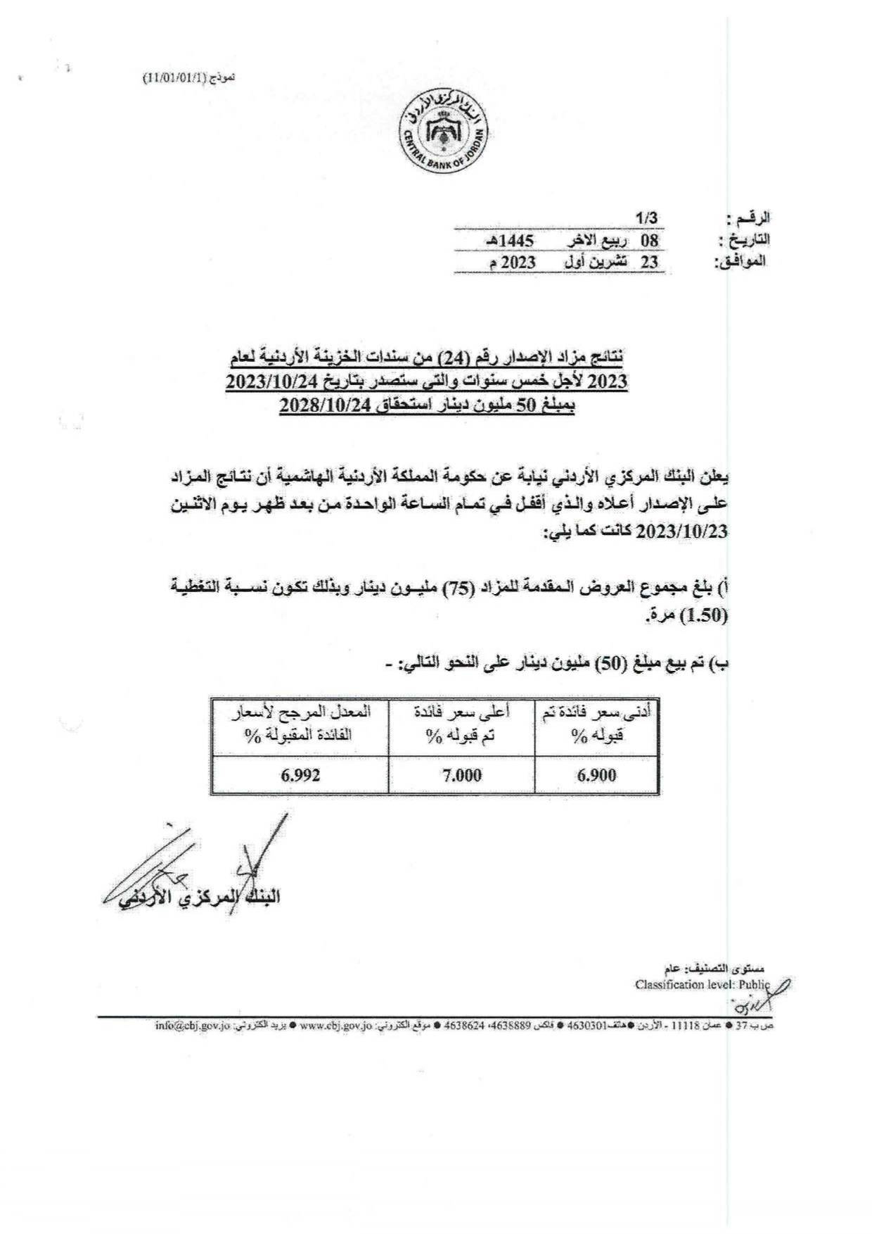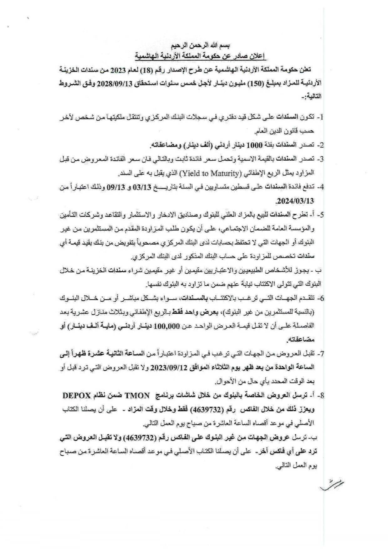 أعلنت بورصة عمّان، إدراج عدد من إصدارات سندات الخزينة عن العام الماضي 2023، وذلك اعتباراً من صباح غد الاثنين.
