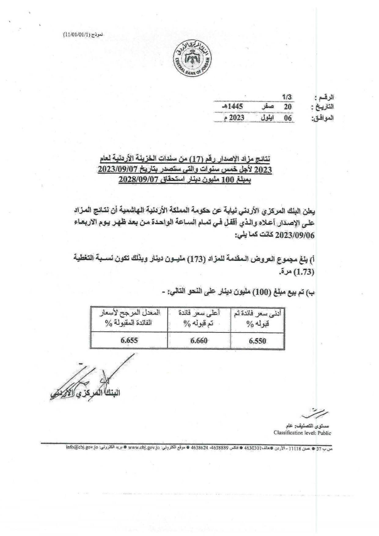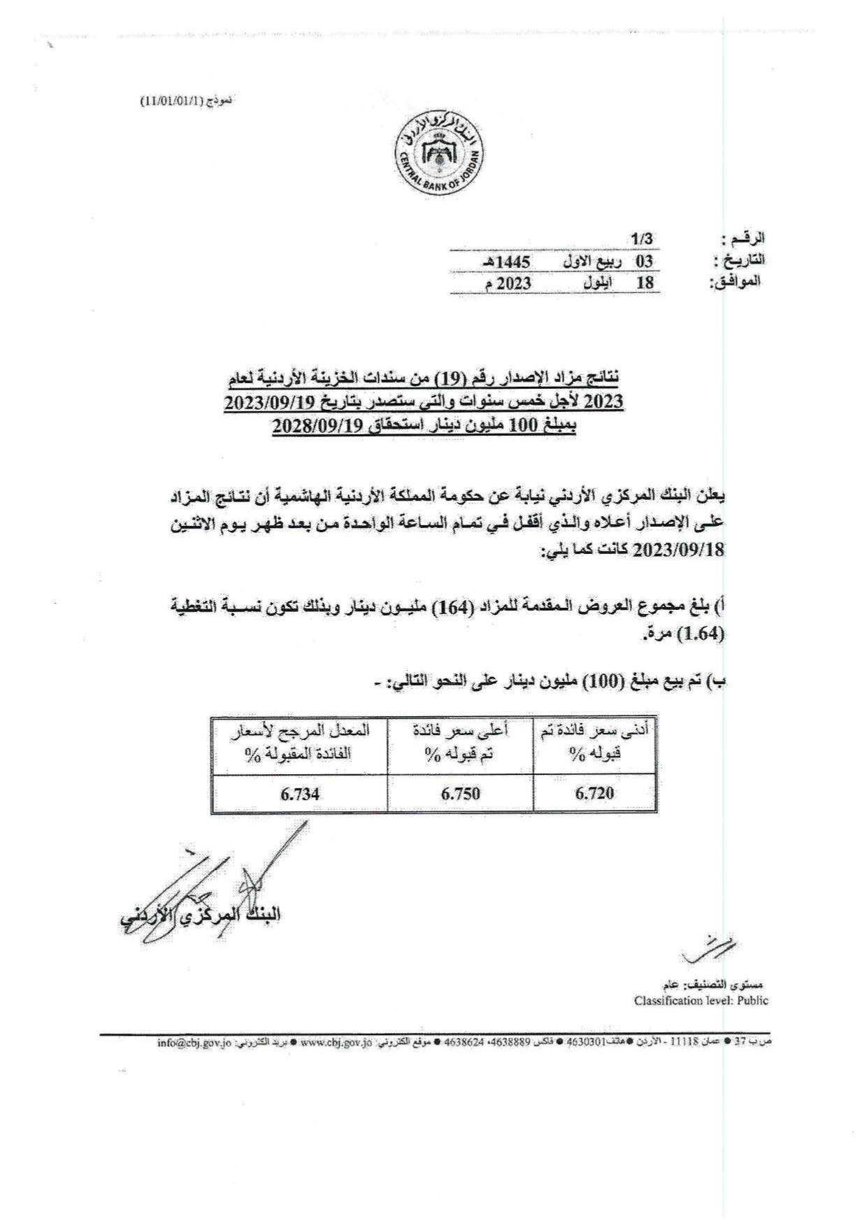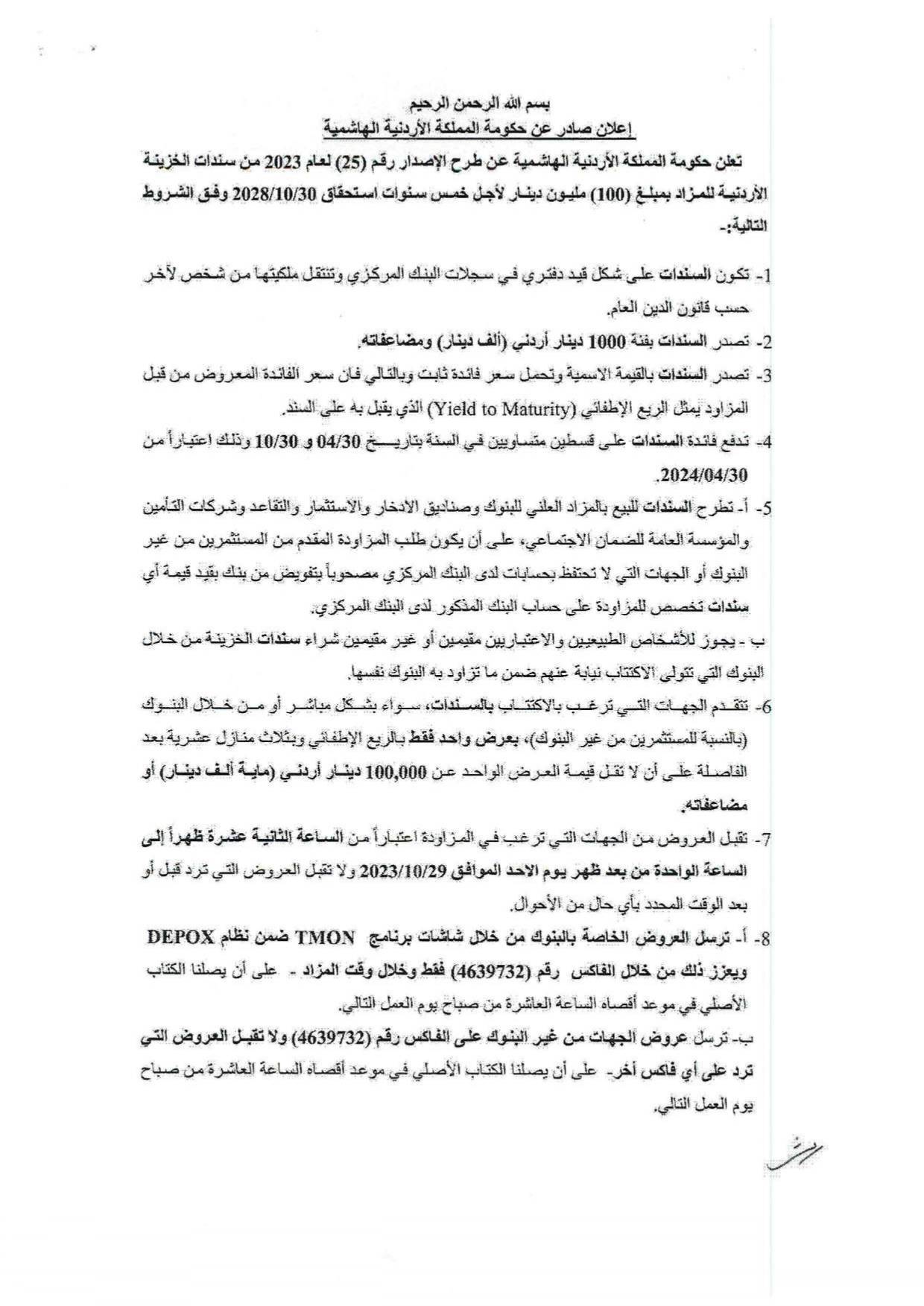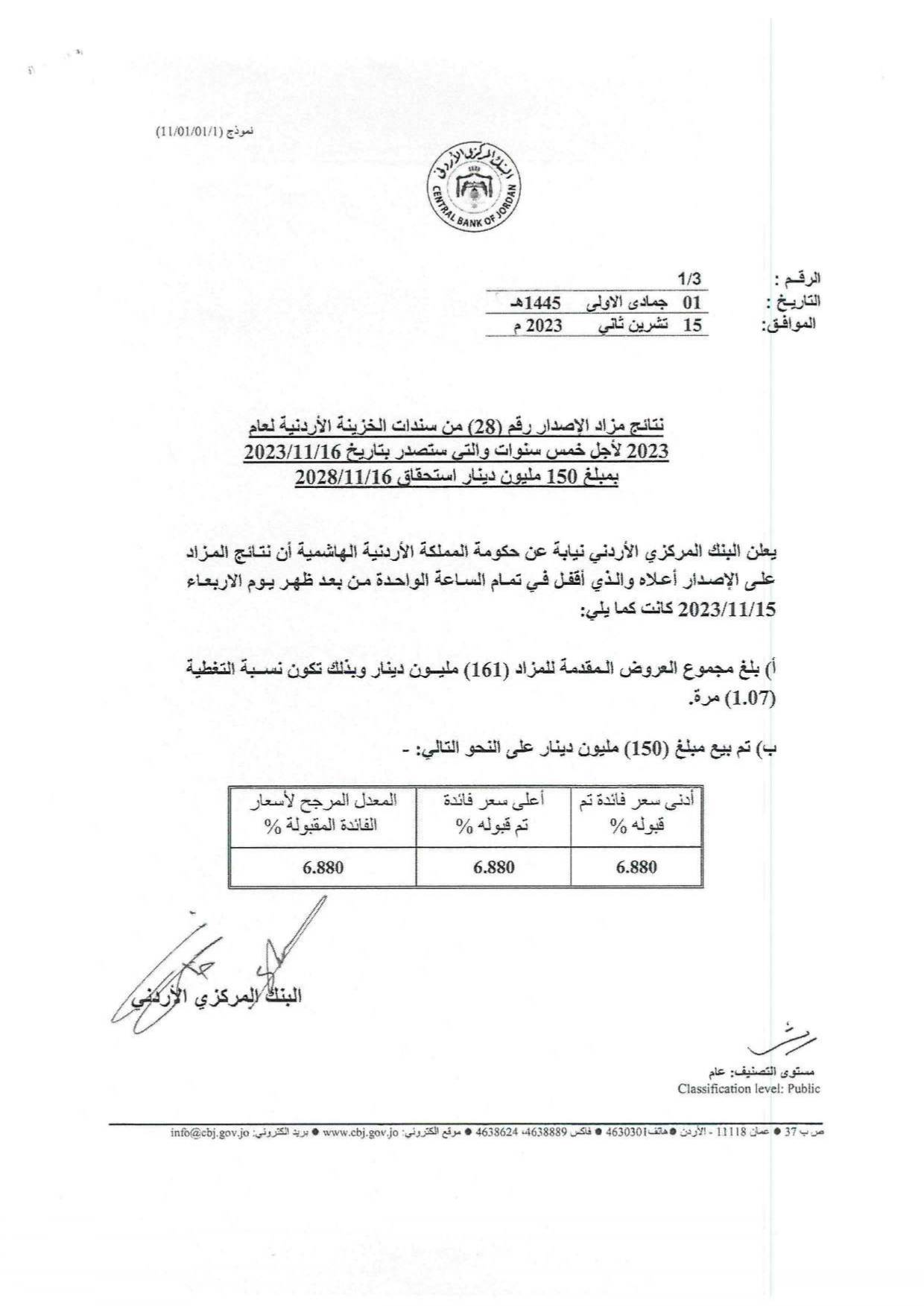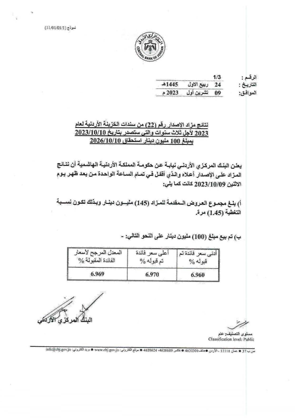 أعلنت بورصة عمّان، إدراج عدد من إصدارات سندات الخزينة عن العام الماضي 2023، وذلك اعتباراً من صباح غد الاثنين.