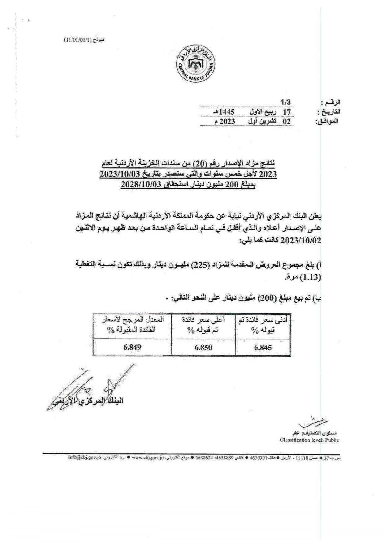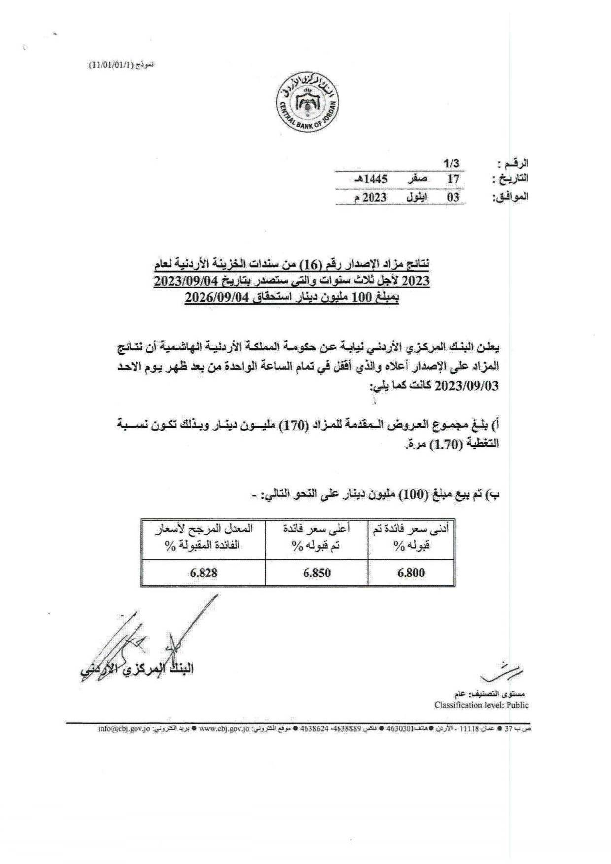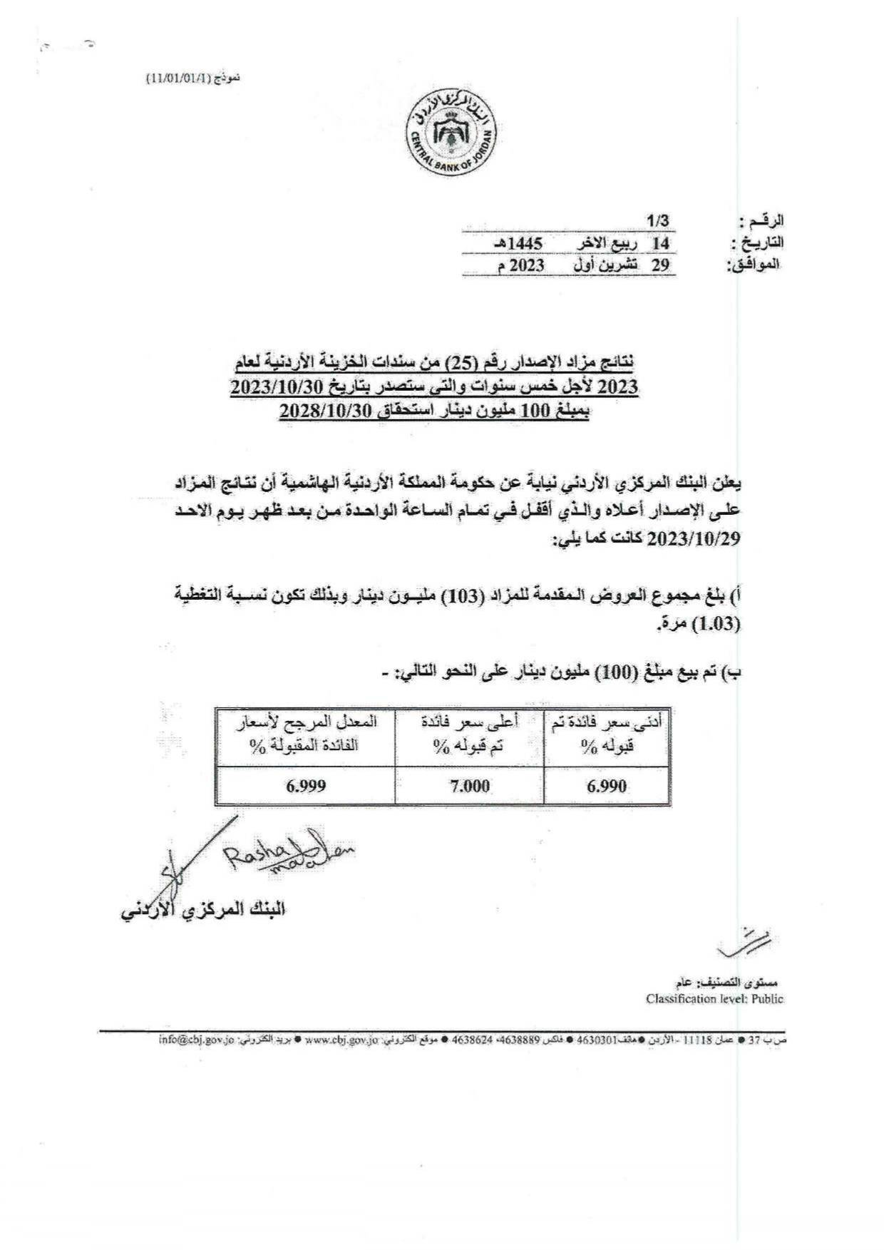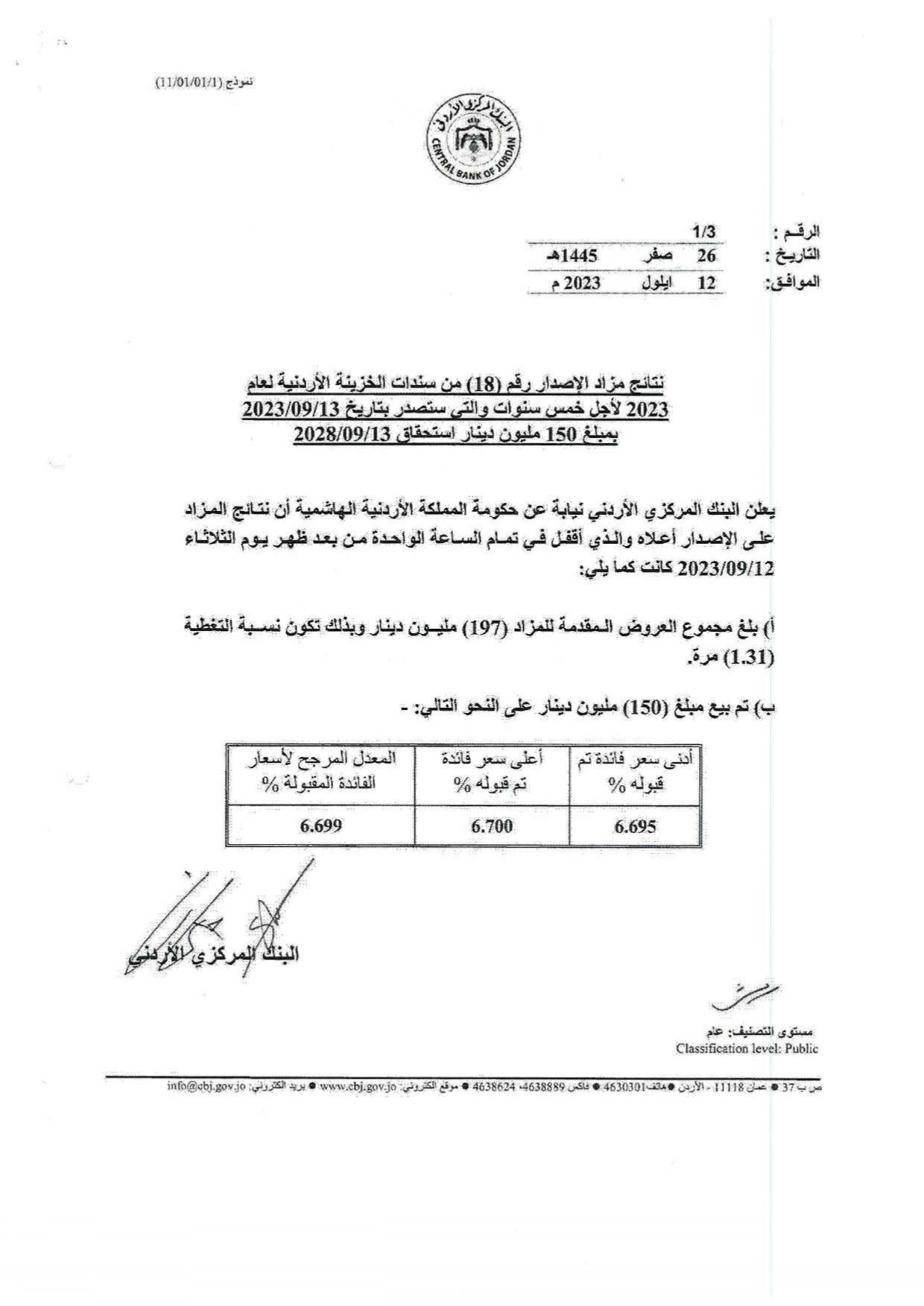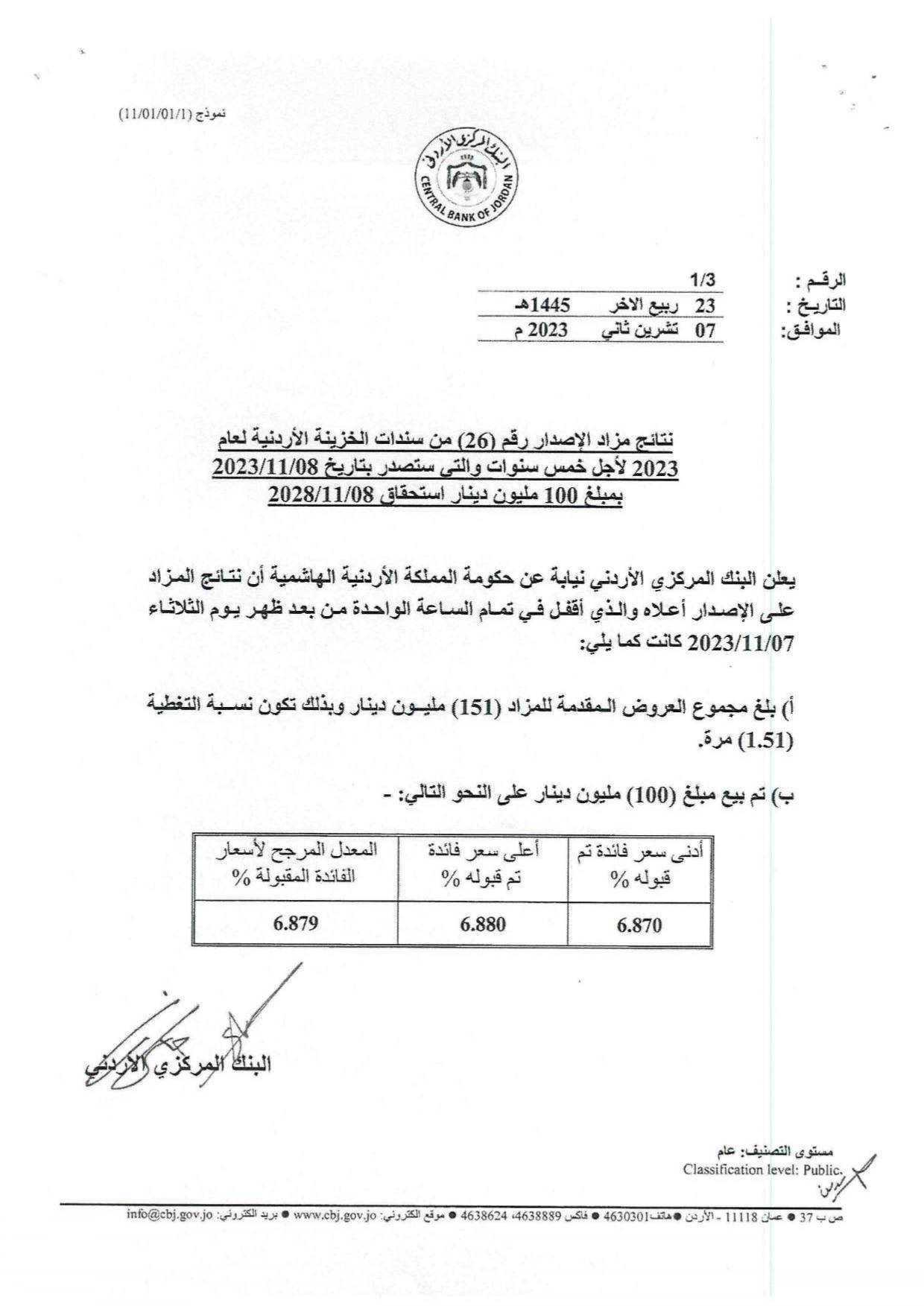 أعلنت بورصة عمّان، إدراج عدد من إصدارات سندات الخزينة عن العام الماضي 2023، وذلك اعتباراً من صباح غد الاثنين.