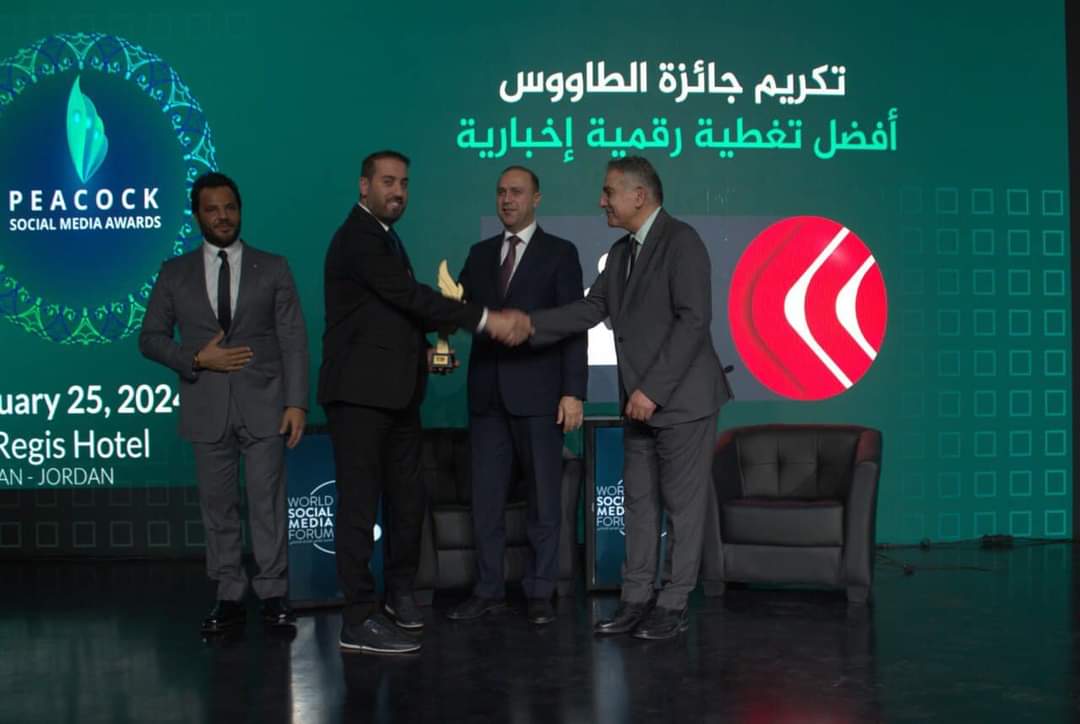 أُعلن اليوم الخميس، عن تكريم الفائزين، بجائزة الطاووس في فئاتها الإعلامية، خلال ختام المنتدى العالمي للتواصل الاجتماعي الذي أقيم في عمّان، بتنظيم من "منصة لحظات الإبداع".