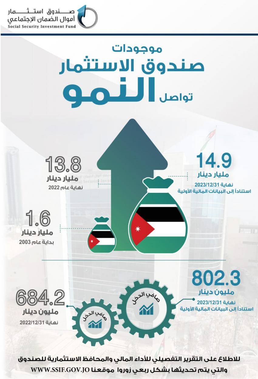14.9 مليار دينار موجودات صندوق استثمار أموال الضمان نهاية 2023