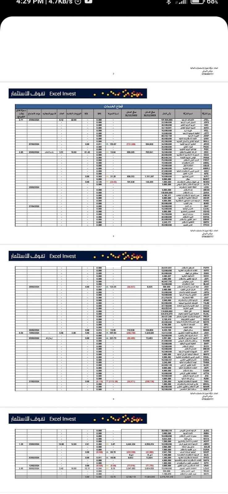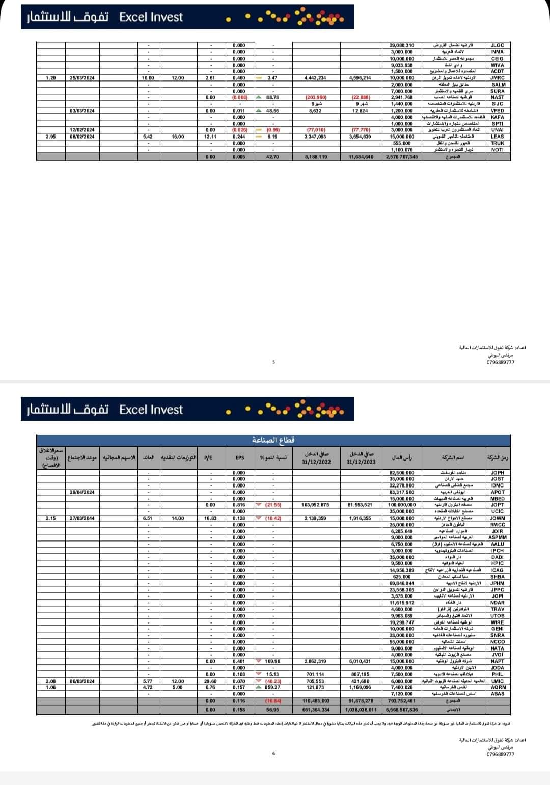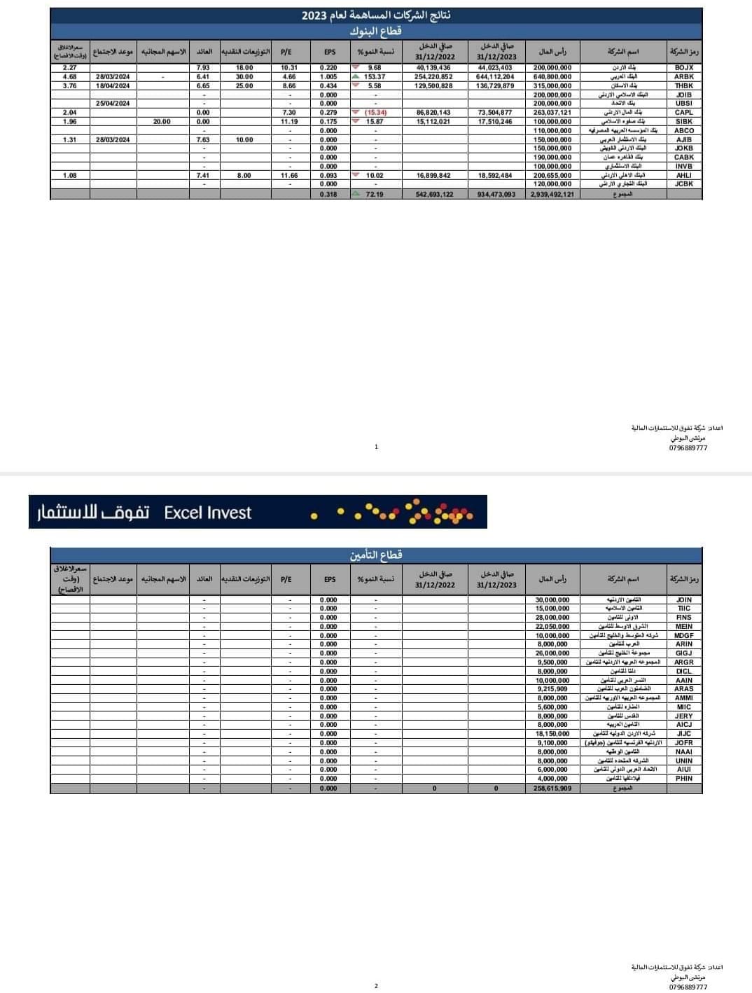 تالياً النتائج المالية للشركات المساهمة للعام 2023 :