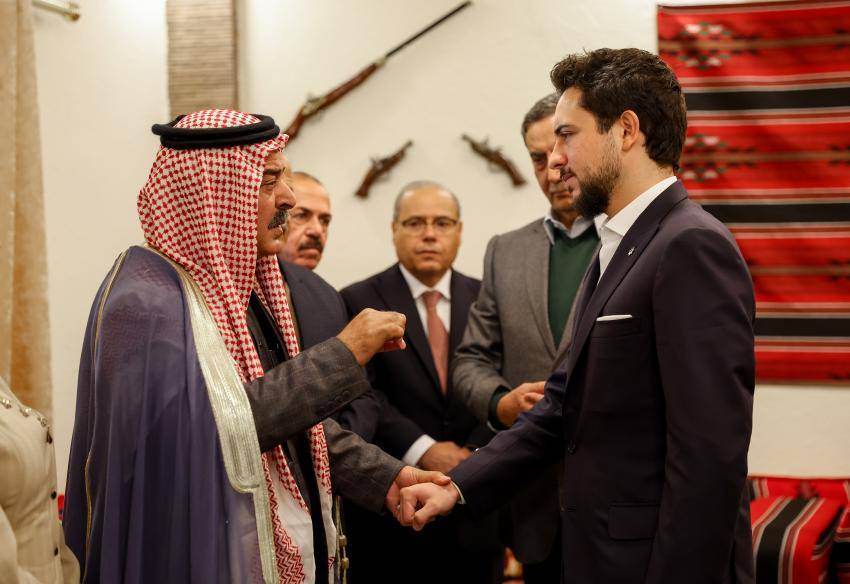 التقى سمو الأمير الحسين بن عبدالله الثاني، ولي العهد، اليوم الأربعاء، مجموعة من وجهاء قصبة المفرق بمنزل الشيخ خالد نواف العيطان، في منطقة رحاب بمحافظة المفرق.