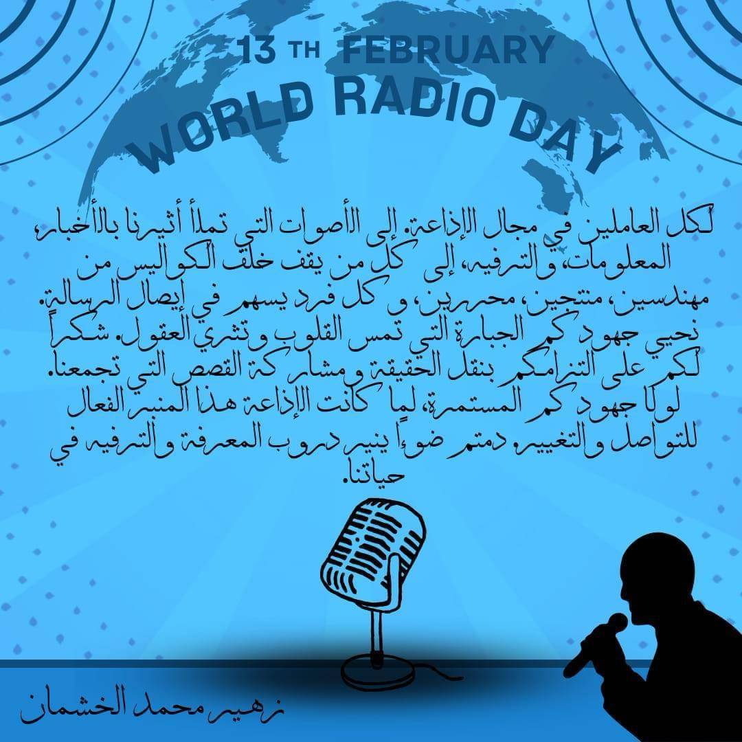 نحتفي اليوم بكل صوت أذيع عبر الأثير، بكل قصة تم تشاركها، وبكل لحظة ألهمتنا. الإذاعة ليست مجرد وسيلة لنقل الأخبار، بل هي جسر للتواصل الإنساني، وسيلة للتعلم والاكتشاف، ومصدر للتسلية والإلهام.