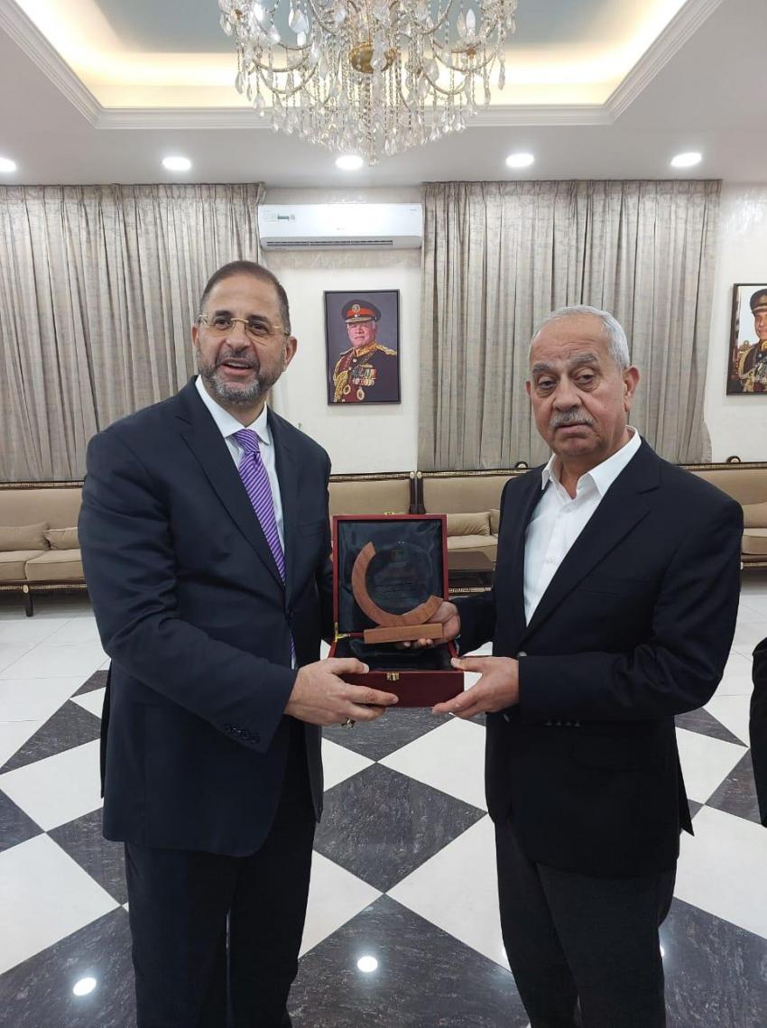 وعلى هامش الاجتماع قام الدكتور احمد الهنداوي بتسليم درع مجلس الاعمال الأردني في دبي الى المهندس فتحي الجغبير.