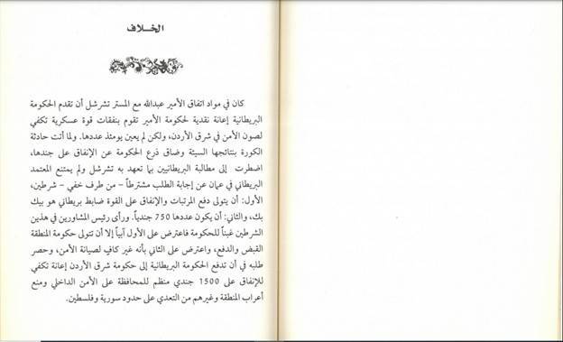 اتضح بعدها ان الخلاف بدأ يتسع بين الامير ورئيس حكومته الى ان قال الامير لطليع بان المعتمد البريطاني ابلغه ان تشرشل اخبر حكومة فلسطين ان الامير عبدالله كان عليه ان لا يعين رئيساً لحكومته معروفا بعدائه للفرنسيين، وانه ان لم يستبدله ستعتبر حكومة انجلترا نفسها في حلٍ من وعودها بالمساعدات للامير عبدالله ... وستقطع المساعدات، وتبدأ أولا" بقطع الاعانة التي خصت بها سموه شهريا (اي راتب الامير الشهري)....