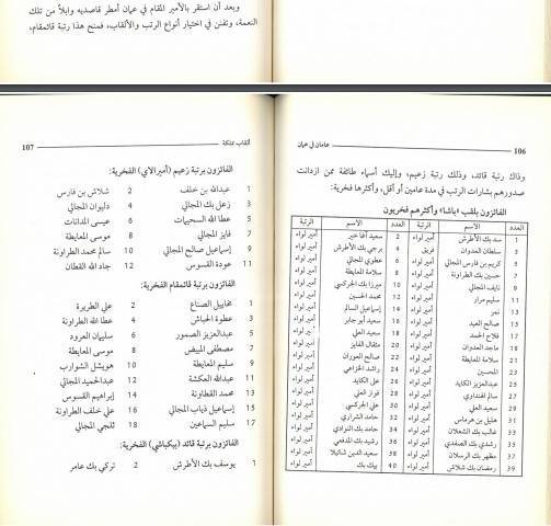 ملاحظة: يقول المؤلف انه خلال اقل من سنتين منح الامير رتبة اميرلواء (باشا) فخري لاكثر من 40 شخصا اسماؤهم مرفقة بالصور عدا عمن منحهم رتبة اميرالاي (زعيم) ورتبة بيكباشي ويوزباشي ايضا كما هو مبين بالكشوف المرفقة على الرغم من أن العدد الكلي لقوات الدرك لم يصل إلى 500 عسكري.