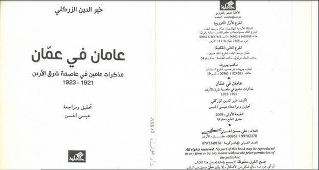 كتب خير الدين الزركلي كتابا يحوي مذكراته في عمان ليوثق عمله مفتشا عاما في وزارة المعارف ورئيسا لديوان الحكومة الاردنية الاولى بين عامي 1921 و 1923... وتم نشر الطبعة الاولى منه في الاردن عام 2009.