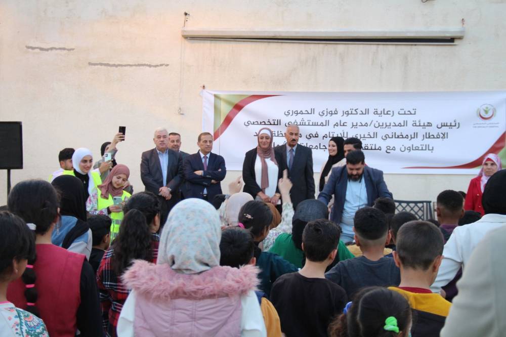 تحت رعاية الدكتور فوزي الحموري نظم المستشفى التخصصي إفطارا رمضانيا للأطفال الايتام في نادي ضباط الشمال في مدينة اربد وبالتعاون مع عدد من الجمعيات الخيرية وبحضور متطوعين من طلبة جامعات الشمال من أعضاء حزب تقدم، وقد سبق الإفطار عدة نشاطات ترفيهية للأطفال وحضر الإفطار السيد محمد النعامنة رئيس نادي ضباط الشمال والمهندس محمود الربابعة رئيس دائرة اربد وعدد من قيادات حزب تقدم بالإضافة الى عدد من الشخصيات من محافظة اربد.