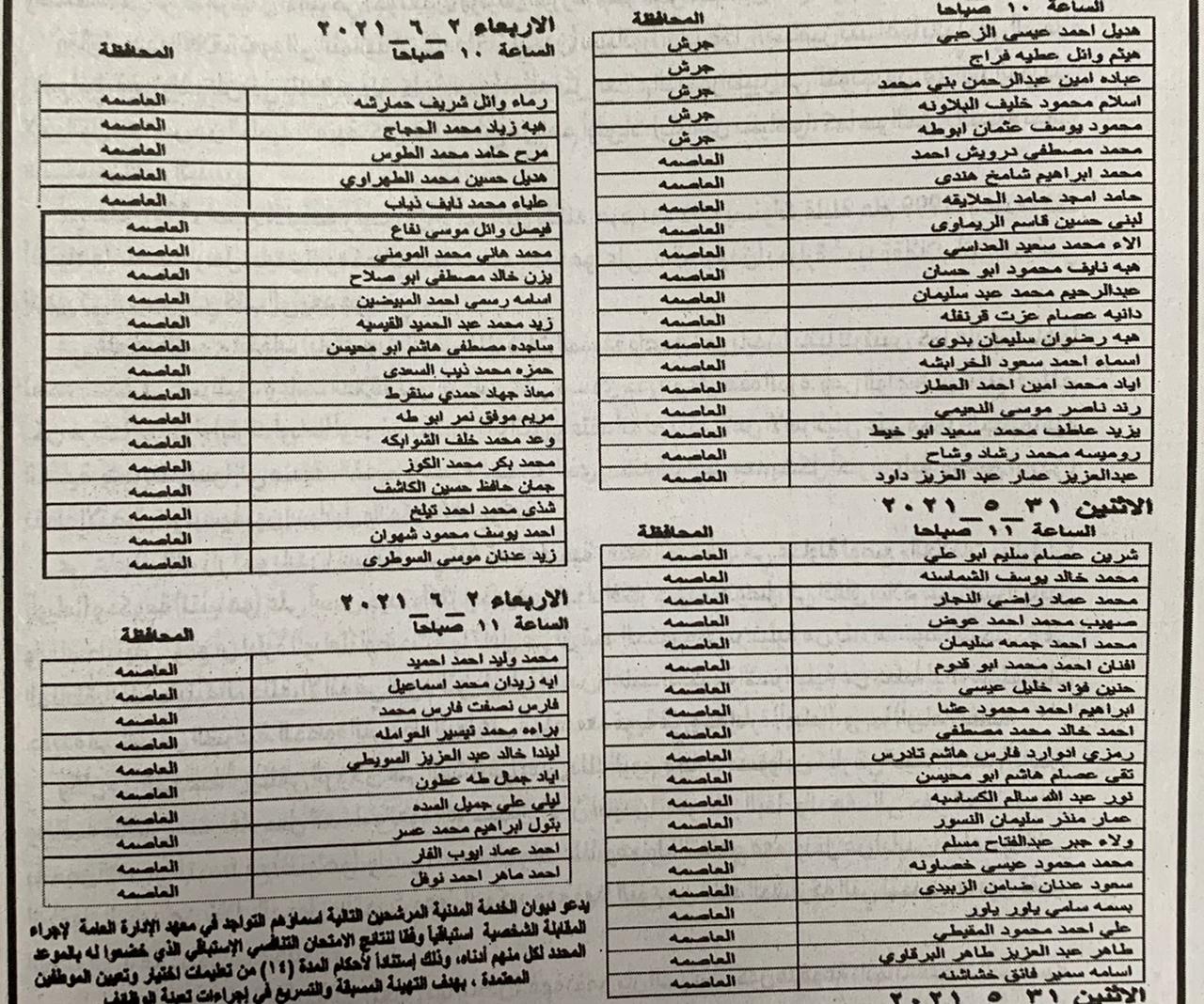 وأكدت الوزارة ضرورة التواجد في معهد الإدارة العامة – عمان – شارع الصحافة بجانب جريدة الدستور البناية رقم 15 في الموعد المحدد لكل منهم، مع ضرورة الحضور قبل الموعد بنصف ساعة مصطحبين معهم بطاقة الأحوال المدنية الصادرة عن دائرة الأحوال المدنية والجوازات (سارية المفعول) وقلم حبر جاف أزرق.