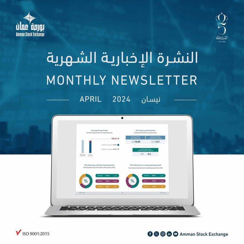 نشرت بورصة عمان النشرة شهرية لشهر نيسان 2024، وتاليا التفاصيل