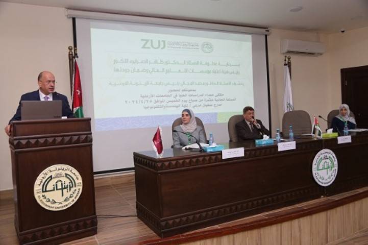 نظمت جامعة الزيتونه الاردنية ملتقى عمداء الدراسات العليا في الجامعات الاردنية برعاية رئيس هيئة إعتماد مؤسسات التعليم العالي و ضمان جودتها الاستاذ الدكتور ظافر الصرايرة و بحضور رئيس الجامعة الاستاذ الدكتور محمد المجالي و بمشاركة عمداء الدراسات العليا في الجامعات الاردنية و عمداء الكليات والهيئة للتدريسية والادارية في الجامعة .