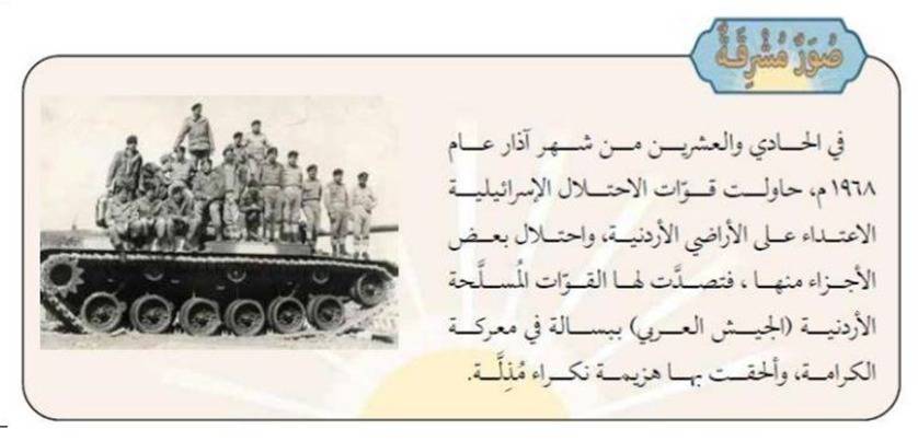 هذه أمثلة لما ورد في كتب التربية الإسلامية الجديدة، كما أن ما صدر من كتب اللغة العربية، والدراسات الاجتماعية يؤكد الاهتمام بفلسطين، حيث تم وضع قصيدة ثورية عن فلسطين للشاعر خالد محادين، ونصّ عن الشاعر إبراهيم طوقان، وفدوى طوقان، كما تم وضع نصّ عن القضية الفلسطينية في كتاب التربية الوطنية للصف العاشر الفصل الثاني!