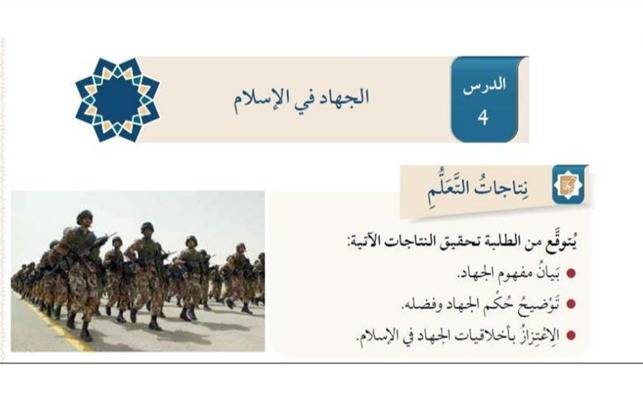 - عناوين دروس، الجهاد في الإسلام الصف الحادي عشر ، الفصل الأول.