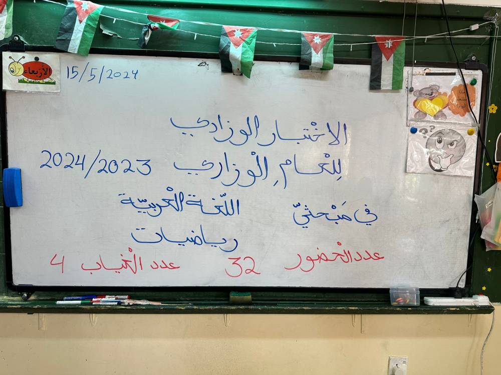 وقالت العجارمة خلال تفقدها قاعات الاختبار في مدرسة أم حبيبة الأساسية المختلطة أن الاختبار يهدف إلى تقييم مستوى الطلبة ومدى تمكّنهم من المهارات القرائية والحسابية في نهاية المرحلة التعليمية الدنيا" الصفوف الثلاث الاولى".