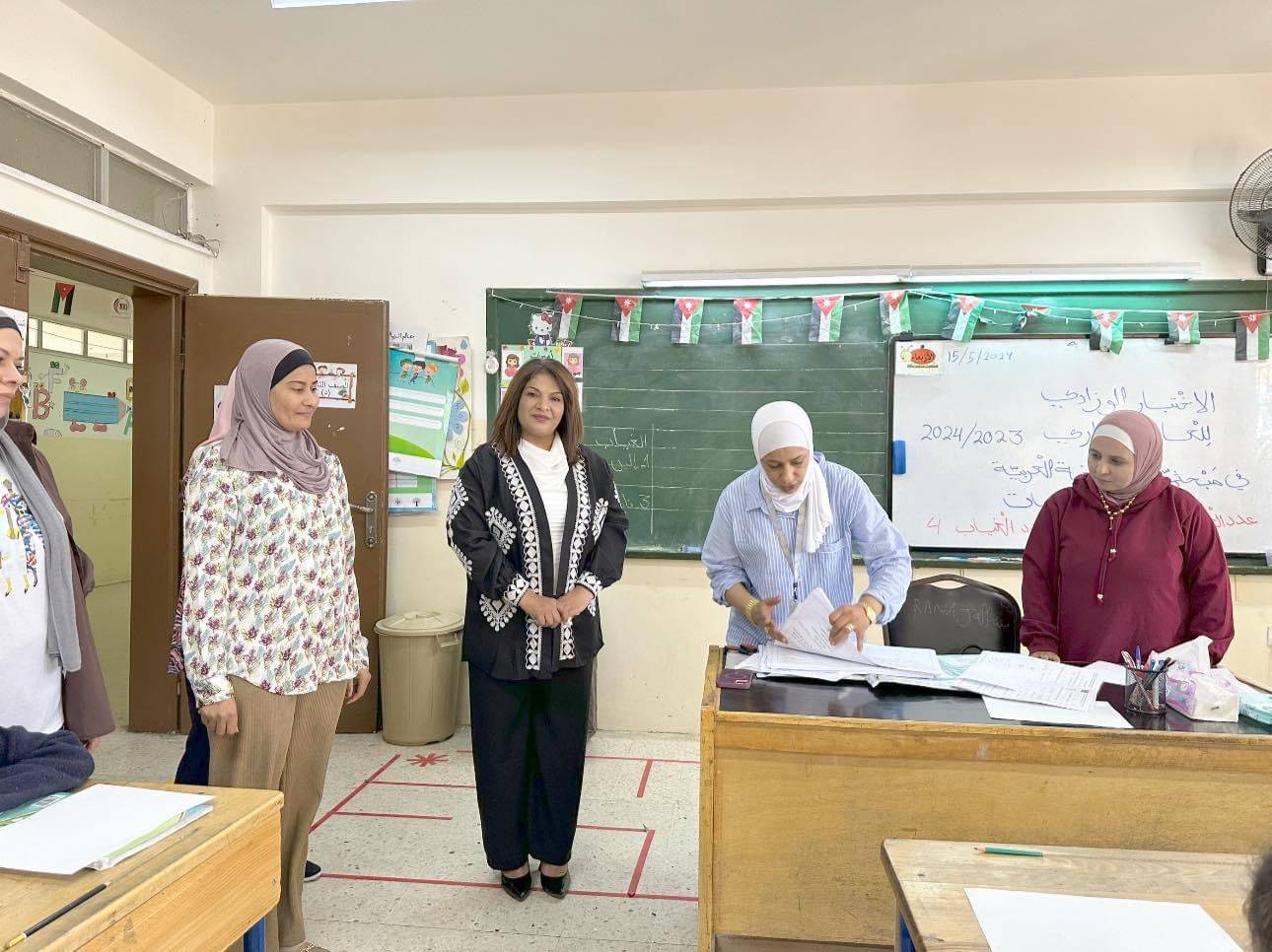 اطلعت مدير التربية والتعليم للواء وأدي السير السيدة سوسن العجارمة على سير الاختبار الوطني التقييمي الذي تعقده وزارة التربية والتعليم لطلبة الصف الثالث الأساسي.