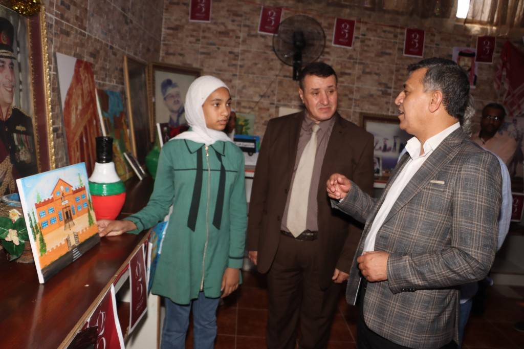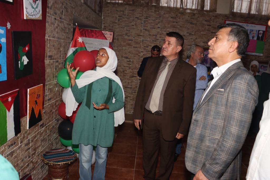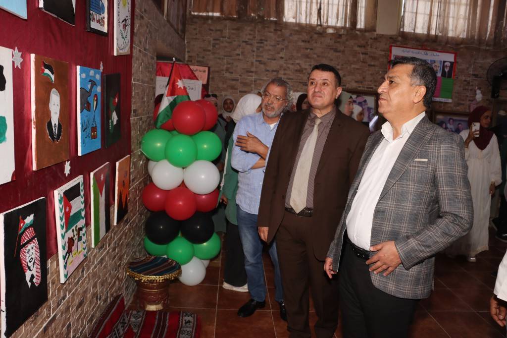 مندوبا عن وزيرة الثقافة هيفاء النجار افتتح مدير معهد تدريب الفنون د. حسين دغيمات وضمن احتفالات المملكة بمناسبة اليوبيل الفضي لتسلم صاحب الجلالة الملك عبد الله الثاني بن الحسين سلطاته الدستورية واعياد الجلوس والاستقلال معرضاً فنياً في مدرسة غور الصافي الأساسية للبنات صباح اليوم الخميس الموافق ٢٣/٥/٢٠٢٤ م بحضور مدير تربية لواء الأغوار الجنوبية عودة الضرابعه وعدد من موظفي تربية اللواء ومديرة المدرسة هدى الشتيوي وعدد من معلمات وطالبات المدرسة .