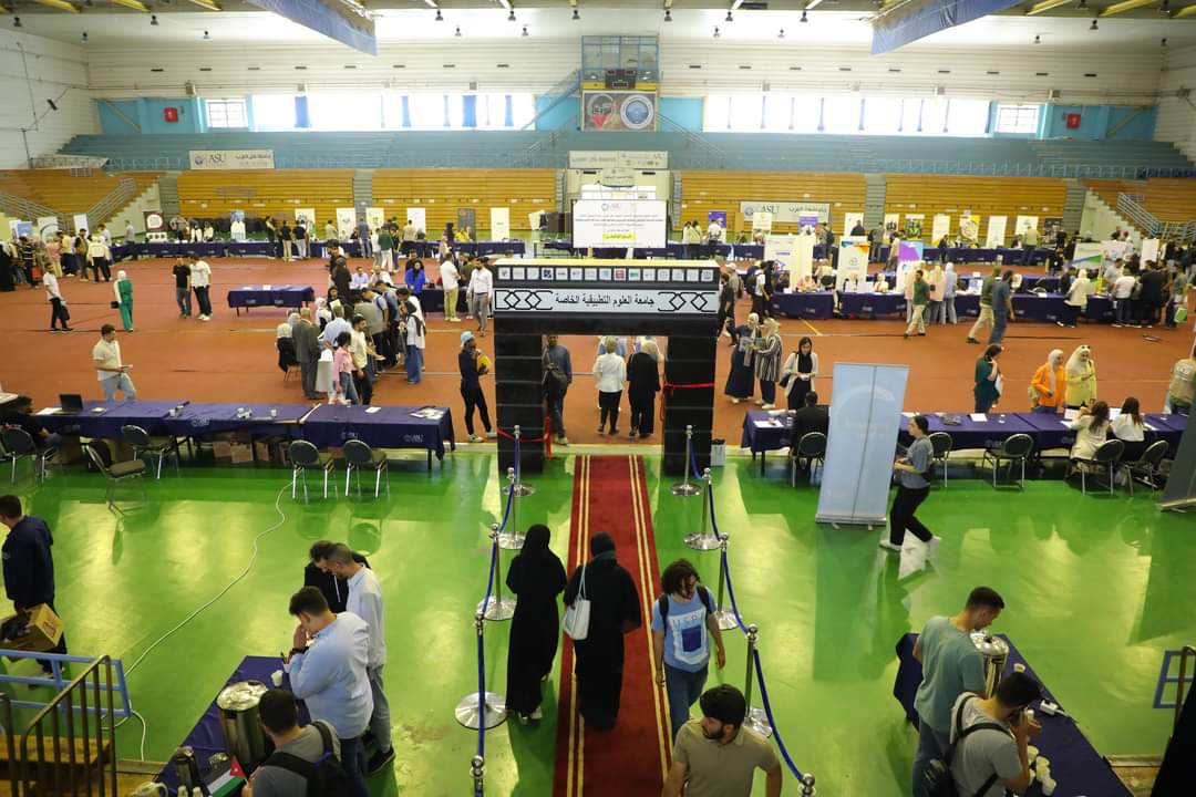 تحت رعاية سعادة الدكتور هيثم عبدالله أبوخديجة رئيس مجلس أمناء الجامعة وبحضور رئيس الجامعة أ.د سميحة الجراح، وضمن احتفالات جامعة العلوم التطبيقية الخاصة بعيد الاستقلال 78 واليوبيل الفضيّ تم افتتاح فعاليات اليوم الوظيفي في الصالة الرياضية والمعرض الفني في كلية الفنون والتصميم بحضور عميد كلية الفنون والتصميم أ.د عماد الفحماوي وعميد شؤون الطلبة د. حسام الشروف وعمداء الكليات الأفاضل مع ثلة من أعضاء الهيئة التدريسية بالجامعة.