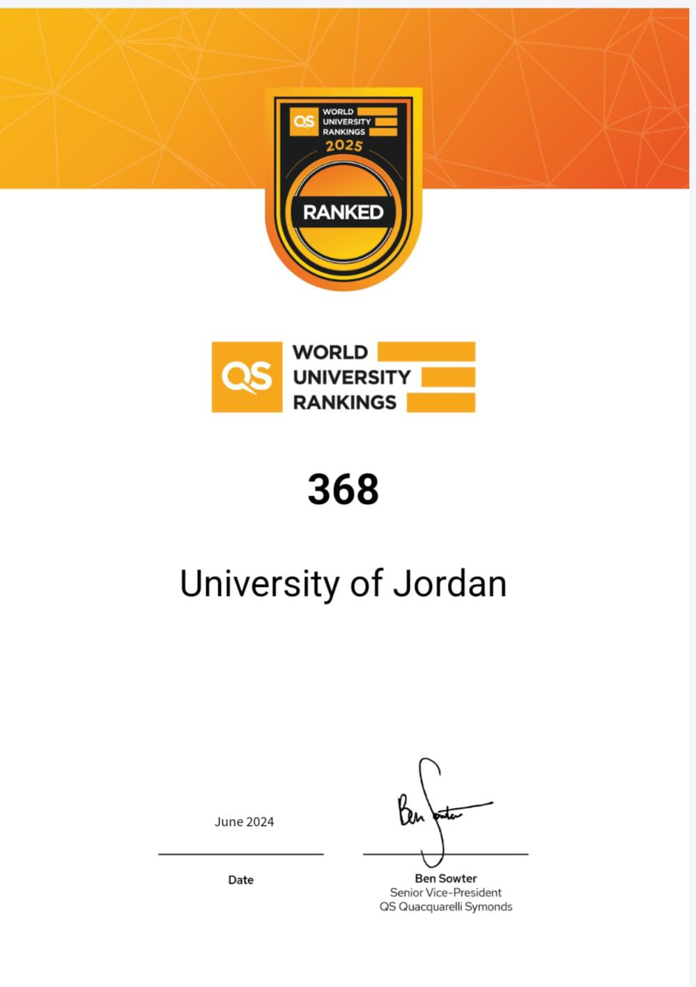 إنجاز تاريخي غير مسبوق: الجامعة الأردنية تتقدم إلى المرتبة 368 على مستوى العالم