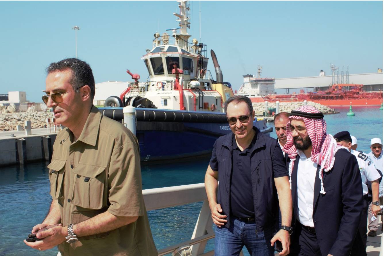 بحث رئيس سلطة منطقة العقبة الاقتصادية الخاصة/ رئيس مجلس إدارة شركة تطوير العقبة، نايف الفايز، وأعضاء المجلس مع المدير العام لشركة ميناء العقبة للخدمات البحرية فردريك روتجزر، آلية التعاون وسير العمل في الشركة من خدمات القطر والإرشاد للسفن القادمة إلى موانئ العقبة للأرصفة المختلفة.