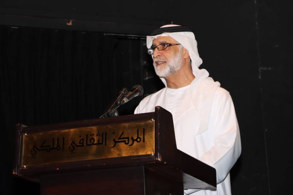 وقبيل اعلان النتائج النهائية للعروض المشاركة ألقى الدكتور حبيب غلوم رئيس لجنة التحكيم لمهرجان المونودراما المسرحي في دورته الثانية كلمة اللجنة التي شكلت بعضوية د. محمد واصف من الاردن والفنانة التونسية وحيدة الدريدي والدكتور حبيب غلوم من الإمارات.