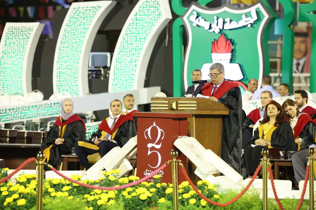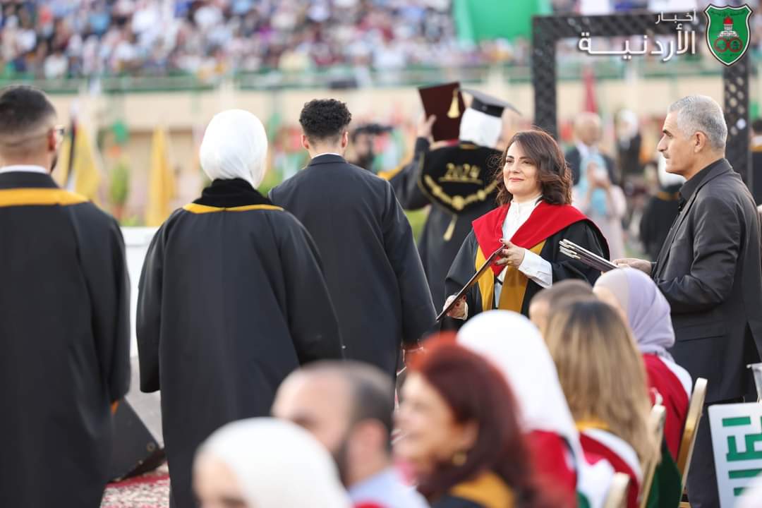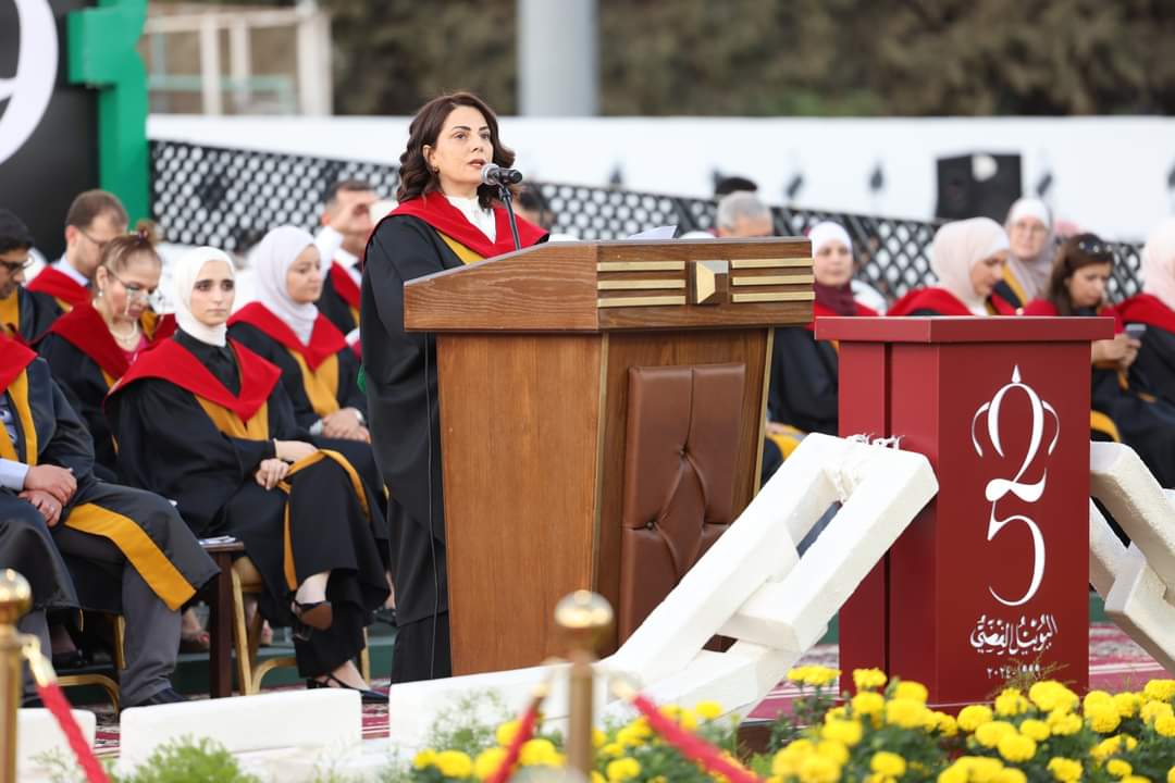 وخاطبت عثمان الطلبة الخريجين بالقول "لا تنسوا أن رحلتكم القادمة ليست مجرد رحلة مهنية، بل مسؤولية عميقة للعناية بالآخرين برحمة وكفاءة ونزاهة، وبالنسبة لي، ما زلت أذكر بوضوح ذلك اليوم الذي سرت فيه على هذه المنصة، حاملة شهادتي والأمانة التي جاءت معها. وحتى يومنا هذا، أدعو في سري أن أكون خير خلف لخير سلف؛ فإنه لفخر عظيم أن أقف أمامكم، مزهوة بأن أكون واحدة من خريجي الجامعة الأردنية".